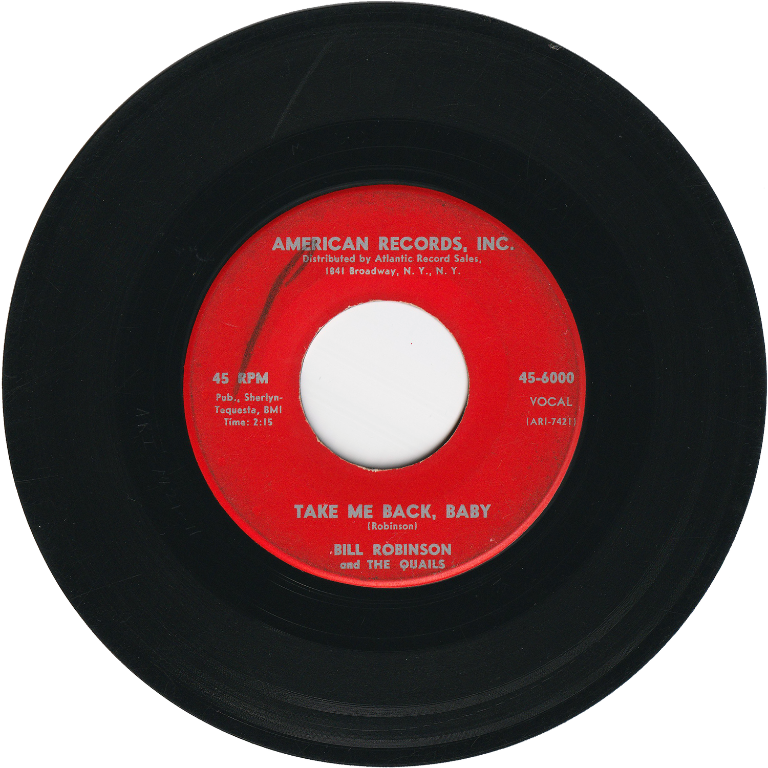 1950年代にはDE LUXEレーベルにもドゥーワップ録音を残す、フロリダ州マイアミ出身のマイナーなR&B・グループ/ビル・ロビンソン&ザ・クエイルズが、1963年にAMERICAN RECORDS,INC.レーベルからリリースしたシングルです。
