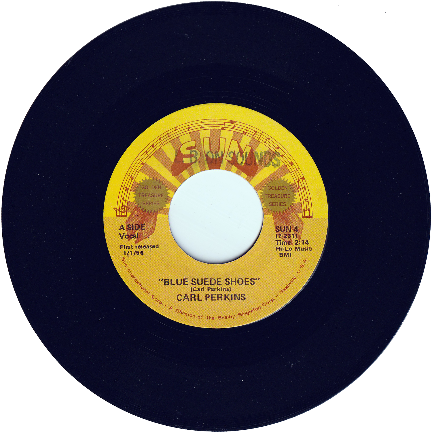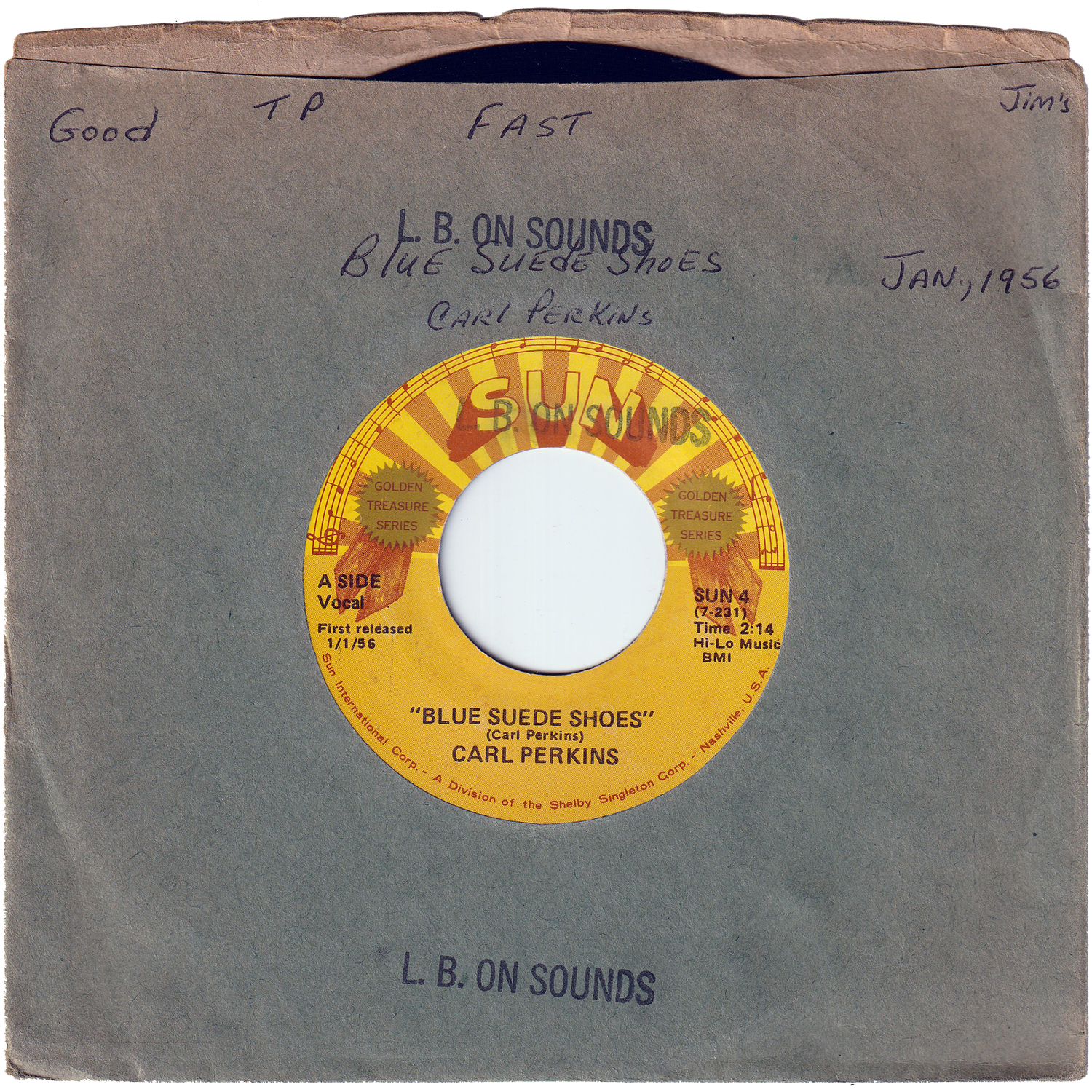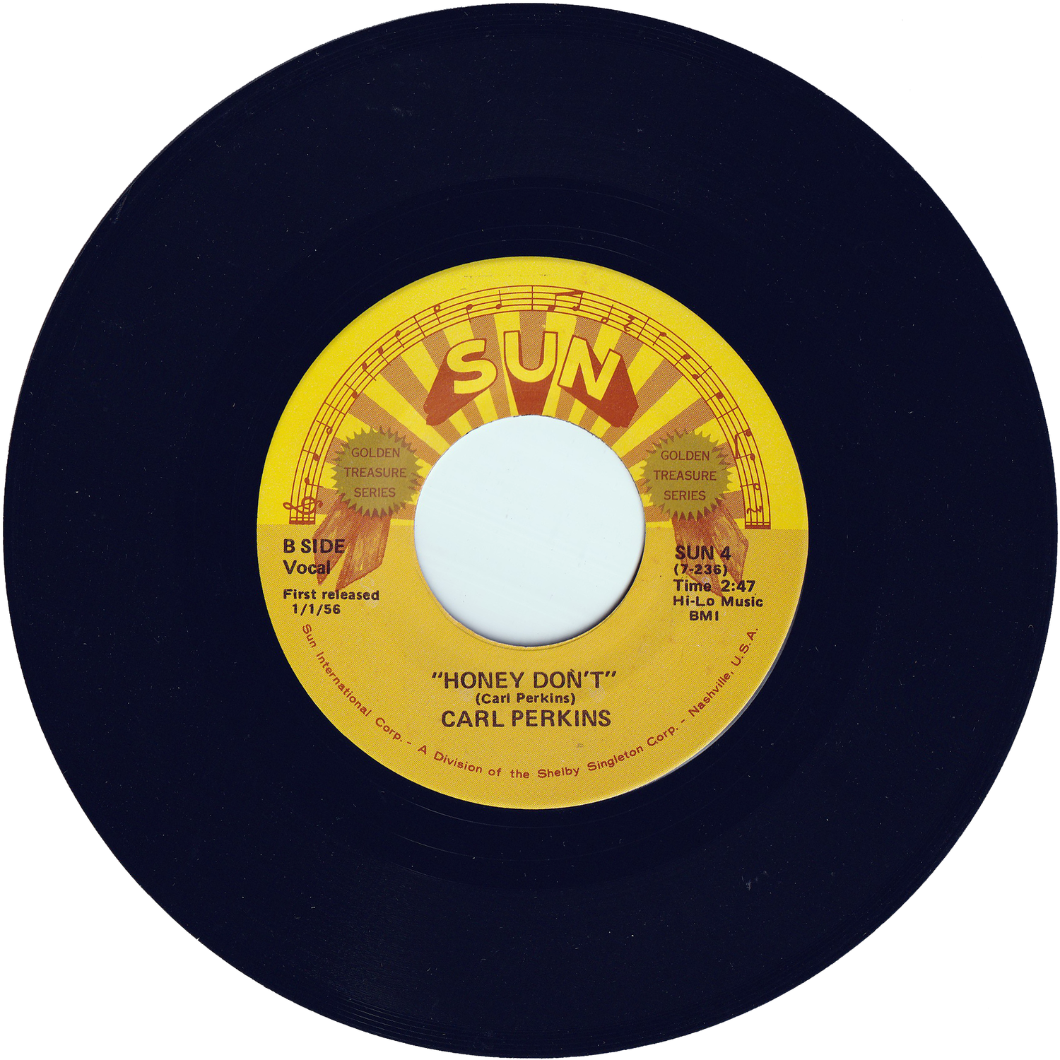 ザ・ビートルズ他、多くのロックミュージシャンに多大な影響を与えた事でも知られる、50年代を代表するロックンロール・シンガー、ギタリスト/カール・パーキンスが、1956年1月にSUNレーベルからリリースした作品の1980's? 正規リイシュー・シングルです。