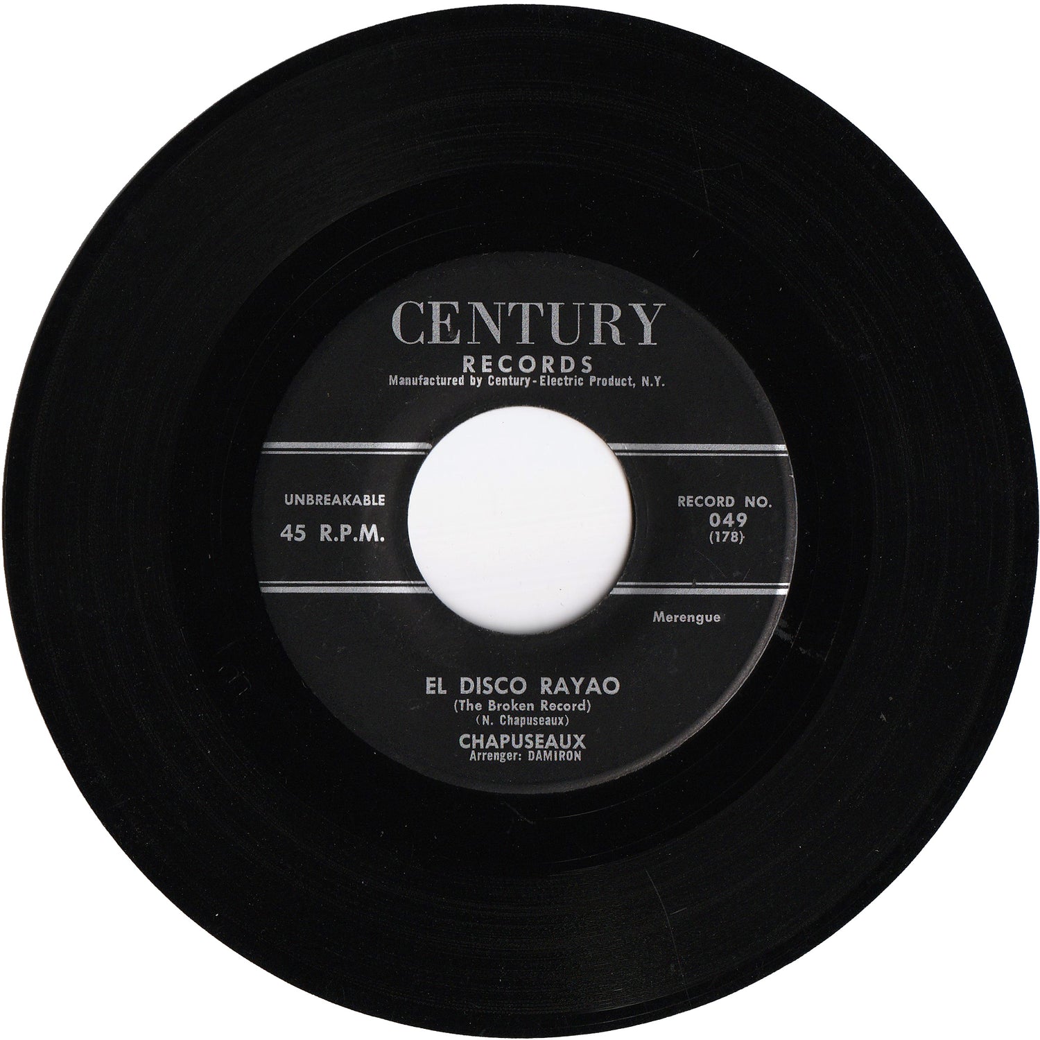 ドミニカ共和国サントドミンゴ生まれの歌手、作曲家、ダンサー、シャプソーが、1950年代と推測される時期に、ニューヨーク所在のCENTURYというレーベルからリリースしたシングルです。