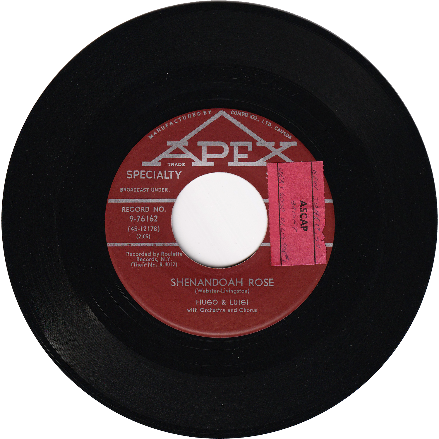 ペリー・コモ、サム・クック他RCA VICTORレーベルで多くのアーティストを手掛け、ROULETTE, AVCO, H&Lレーベルを所有したことでも知られるブリルビルディングのプロデューサー・コンビ/ヒューゴ・ペレッチとルイージ・クリエートアが、1957年にカナダのAPEXレーベルからリリースしたシングルです。