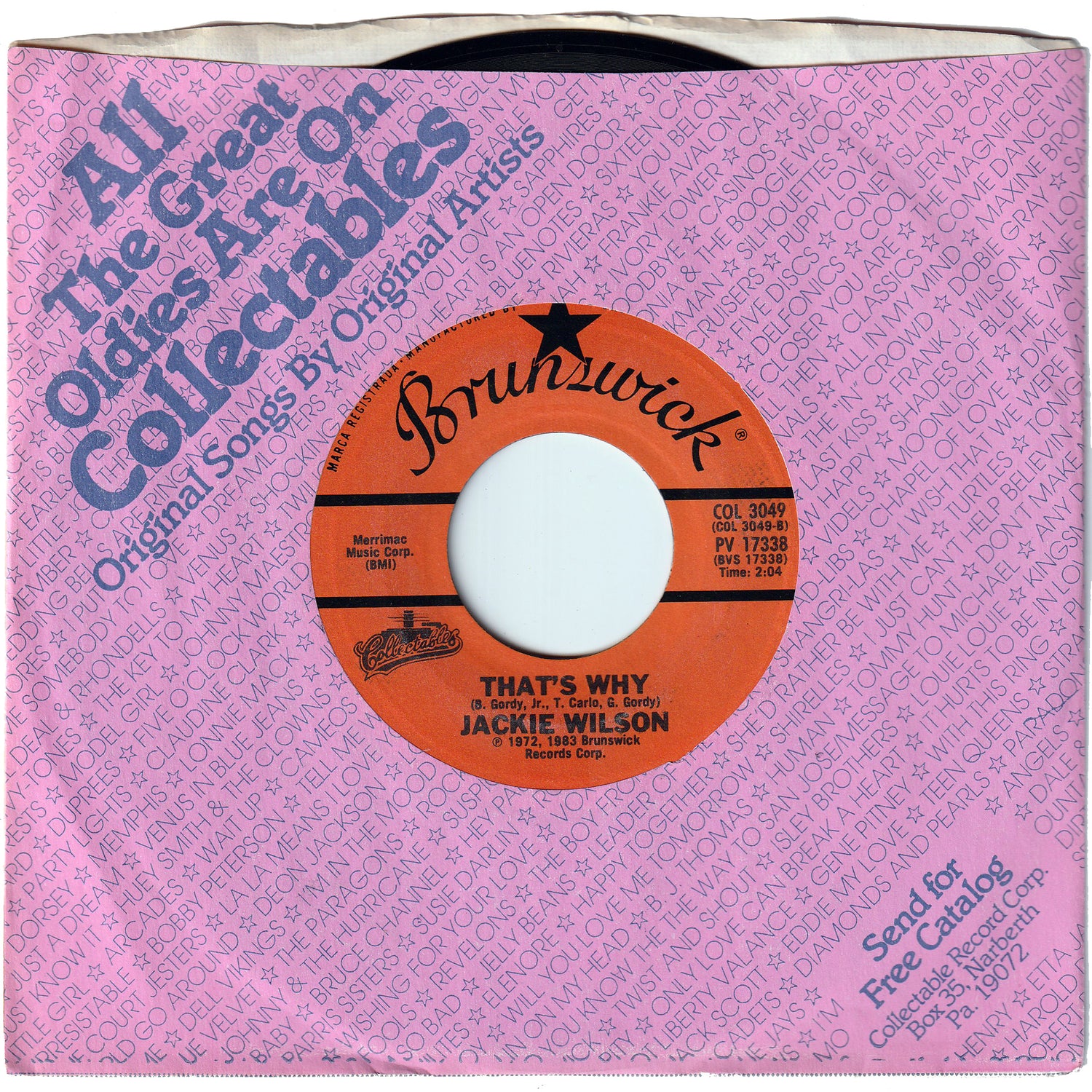 サム・クック、ジェームス・ブラウンと並び、USソウル史における最重要人物といわれる重要R&B~ソウル・シンガー/ジャッキー・ウィルソンが、1959年3月にBRUNSWICKレーベルからリリースした作品の、1980's COLLECTABLESレーベル・リイシュー・シングルです。