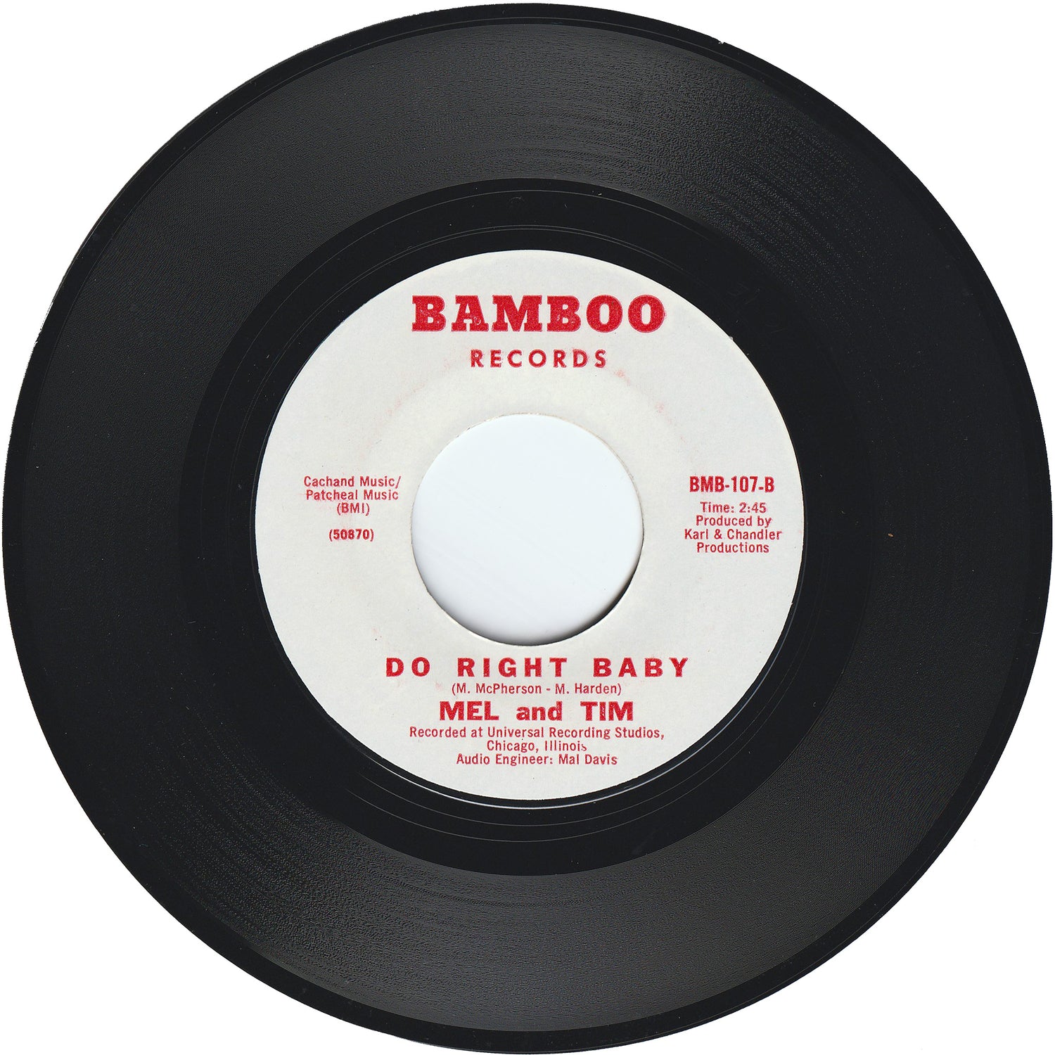 ミシシッピ州ホリー・スプリング出身のメル・ハーディンと、ティム・マクファーソンによる従兄弟同士で結成されたソウル・ヴォーカル・デュオ/メル&ティムが、1969年にBAMBOOレーベルからリリースしたシングルです。