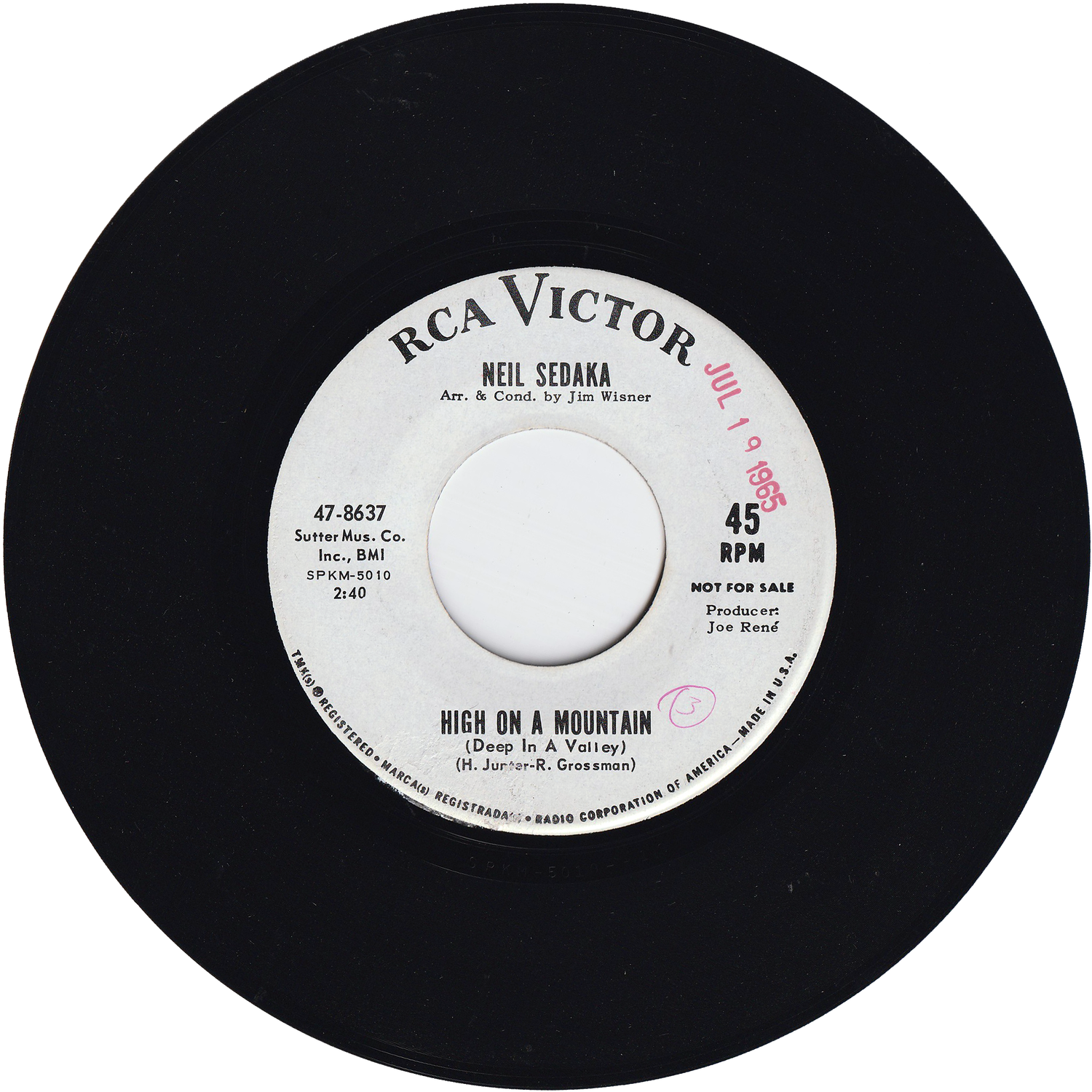 60年代初頭を代表する売れっ子歌手として有名なだけでなく、作詞家ハワード・グリーンフィールドとの作曲家コンビでも多くのヒット曲を提供してきた、ニューヨークのブリルビルディングを代表する一流の作曲家としても知られる、ポップ・シンガー/ソングライター/ニール・セダカが、1965年にRCA VICTORレーベルからリリースしたシングルです(ホワイト・レーベル・プロモ盤)。