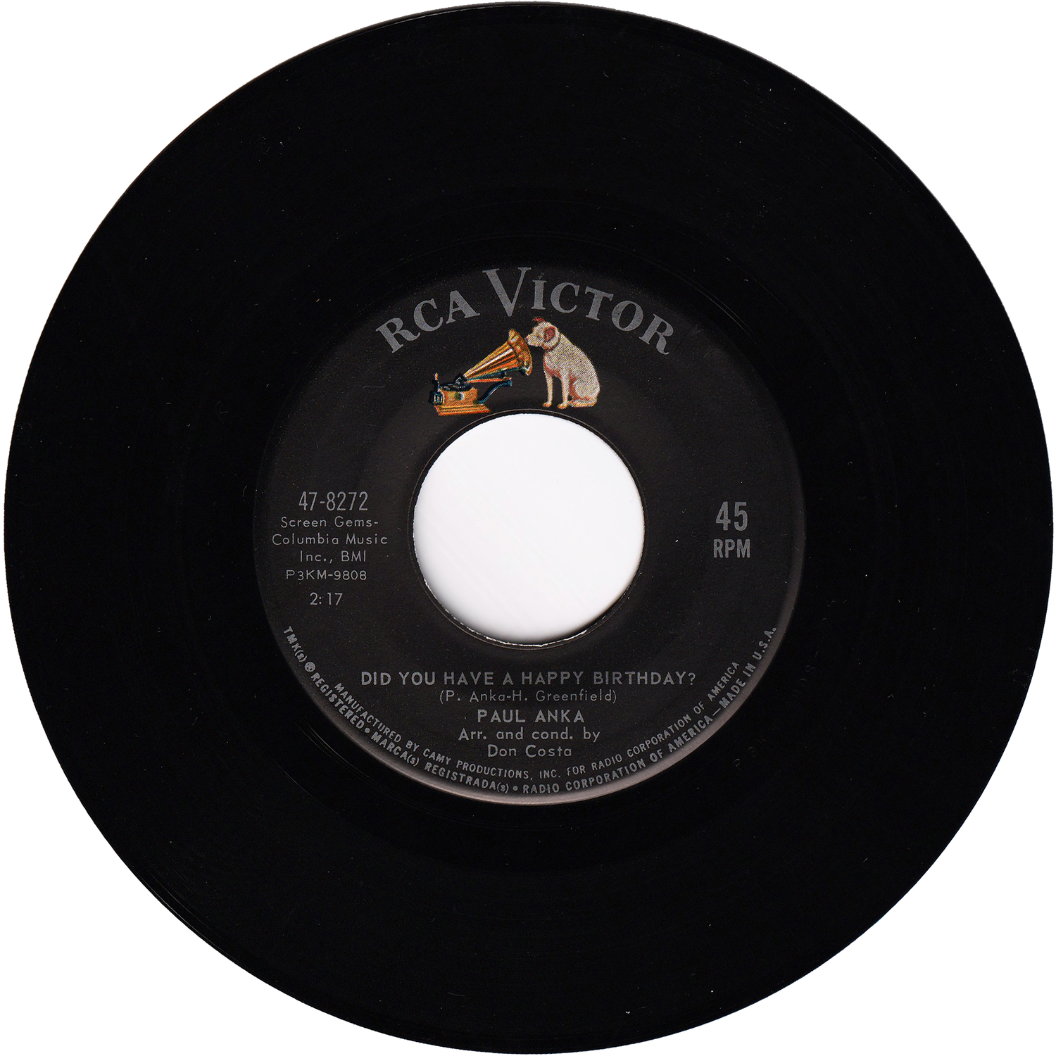 1963 USA Original 45rpm Record [RCA VICTOR/47-8272]
