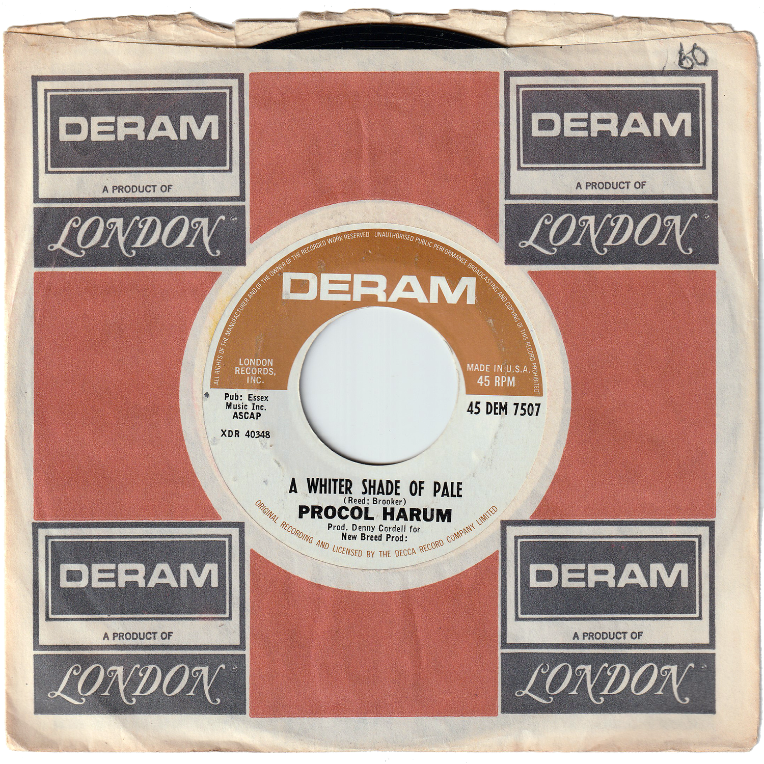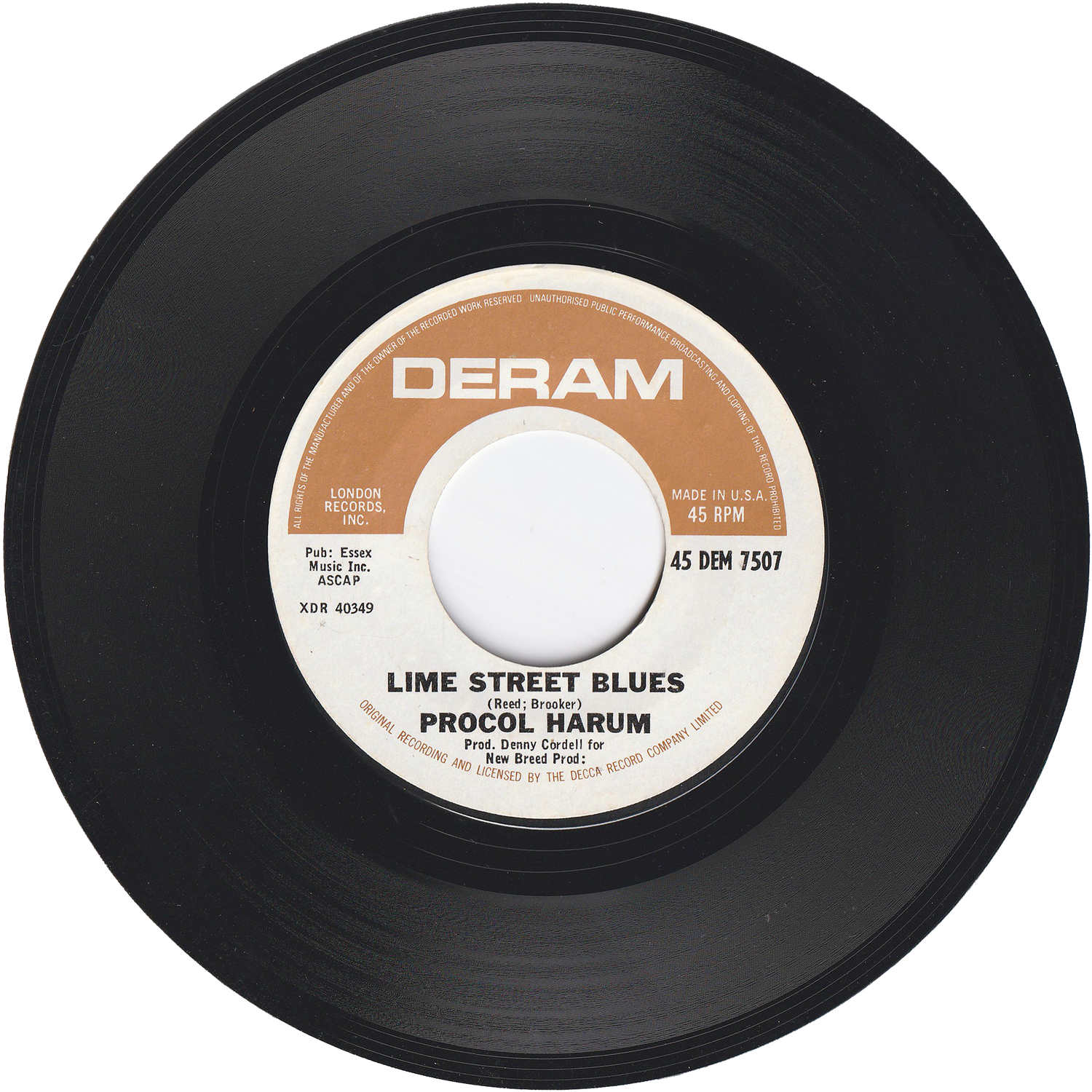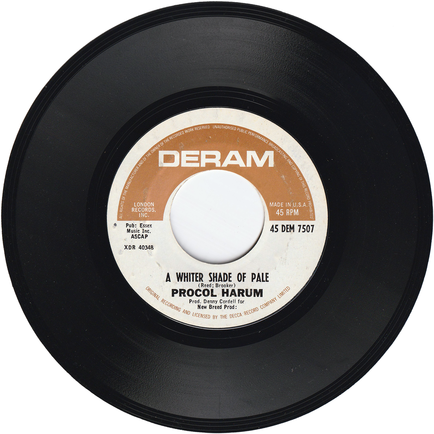 イギリス・エセックス出身のビート・バンド/ザ・パラマウンツを母体にロンドンで結成され、ロックにクラシックやブルースを持ちこんだ独特のスタイルは、プログレッシヴ・ロックのルーツとしても重要視されるUKロック・グループ/プロコル・ハルムが、1967年にDERAMレーベルからリリースしたグループのデビューシングルです。