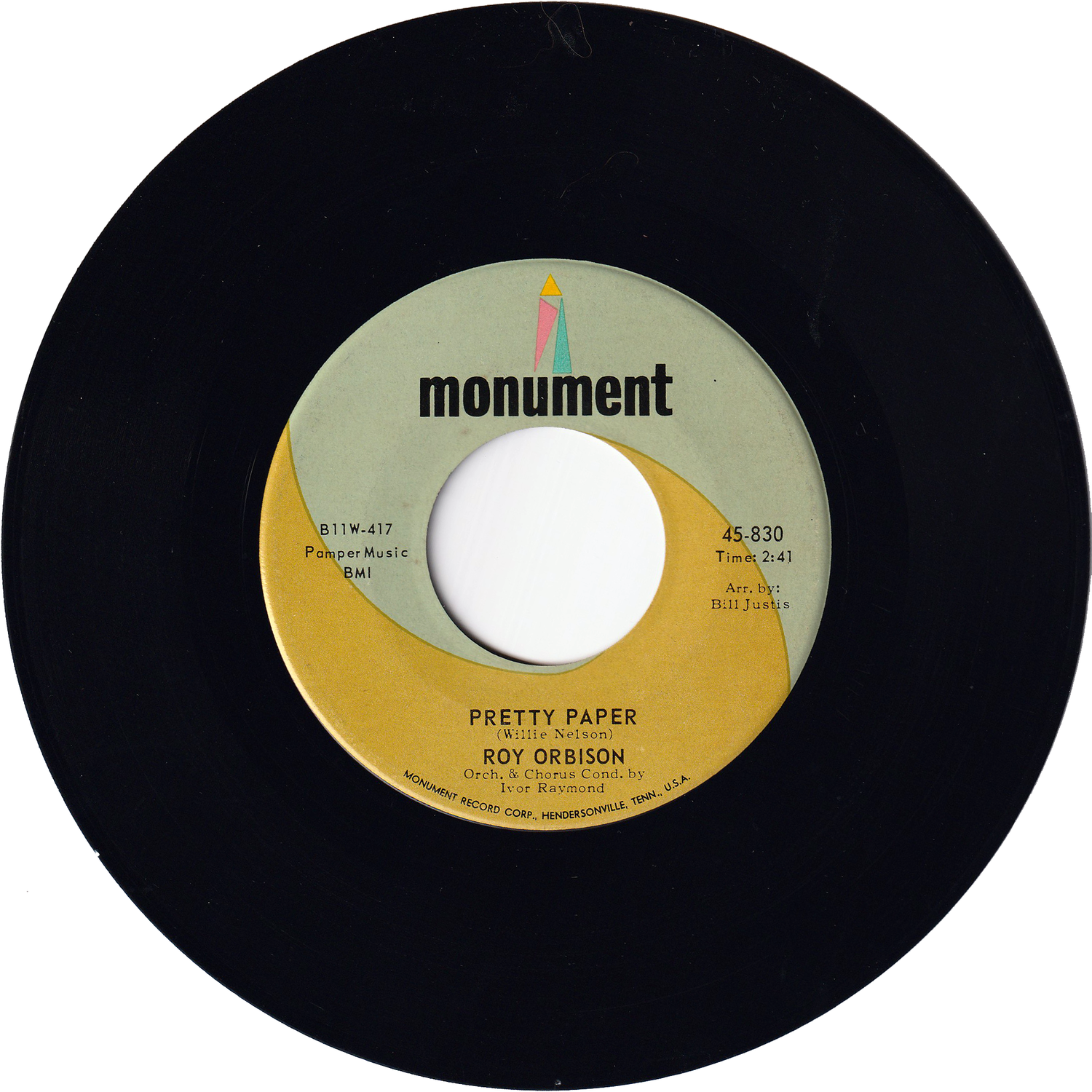 ネルソンはプロデューサーのフレッド・フォスターに曲を売り込み、それに感銘を受けたフォスターは、ロンドン滞在移駐のオービソンに曲を提案し、ビル・ジャスティスがアレンジメントを担当した音源のデモテープがイギリスのオービソンに送られました。ロイ・オービソンの公式伝記によると、「プリティー・ペイパー」はロンドンのDECCAスタジオ2で音楽監督のアイヴァー・レイモンドとともに録音されました。