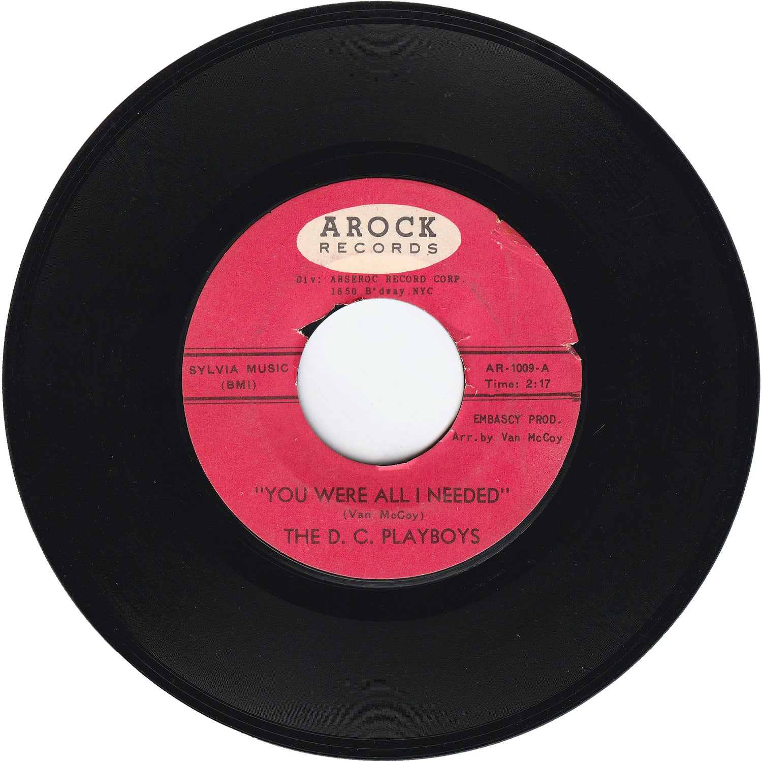 D.C.がベースと推測されるマイナーなR&B・グループ/ザ・D・C・プレイボーイズが、1964年にAROCKレーベルに残した唯一のシングルです。