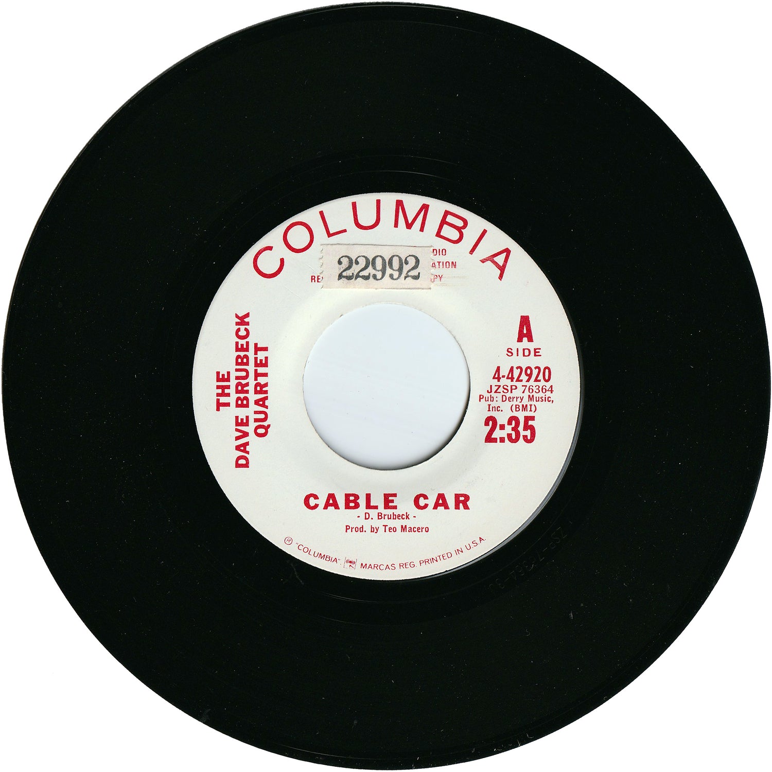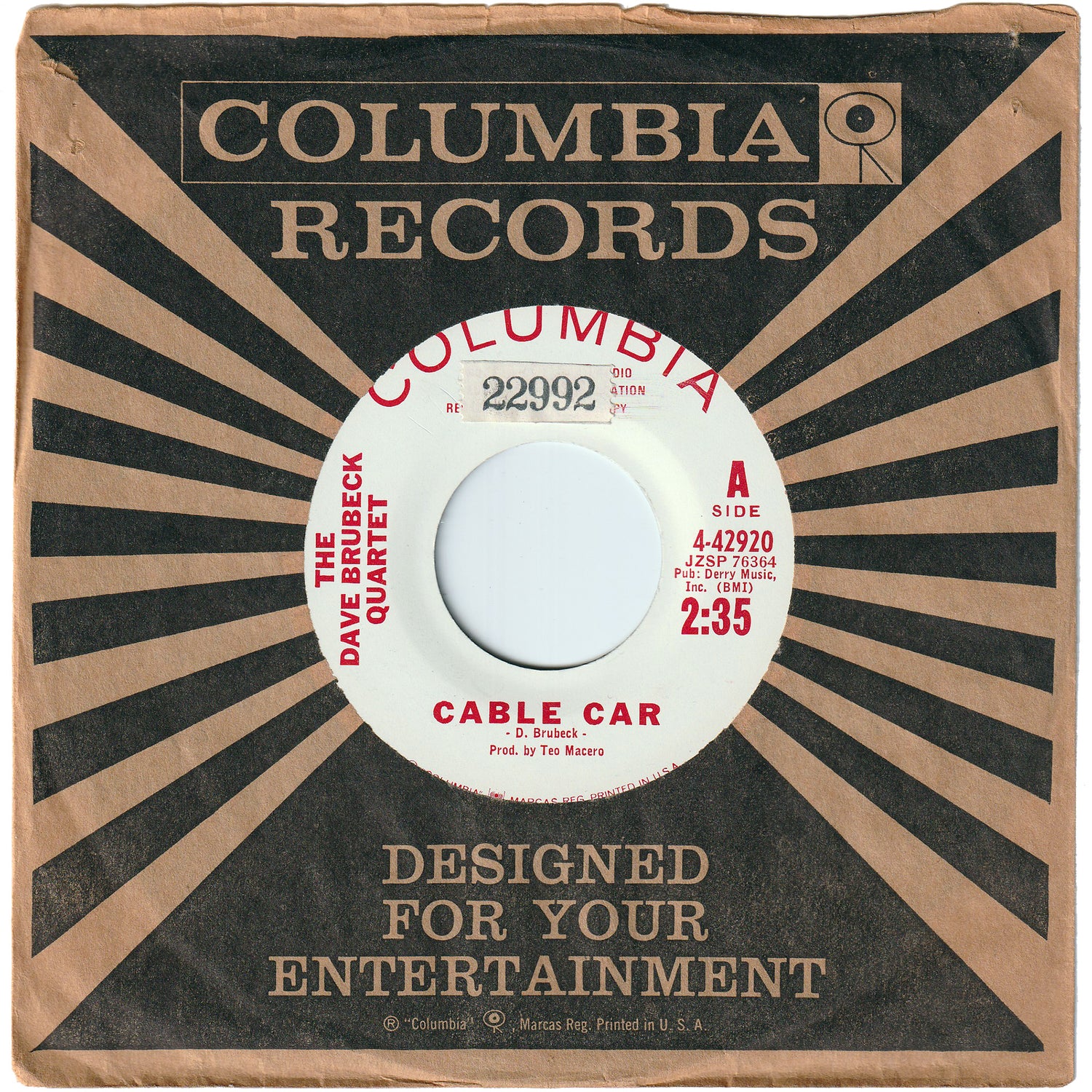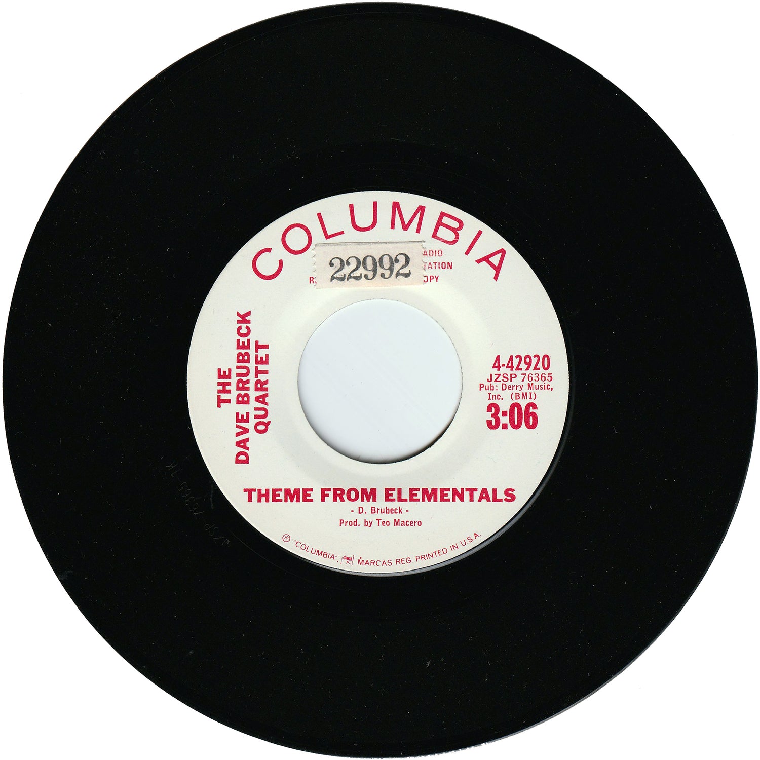 The Dave Brubeck Quartet - Cable Car / Theme From Elementals (Promo)