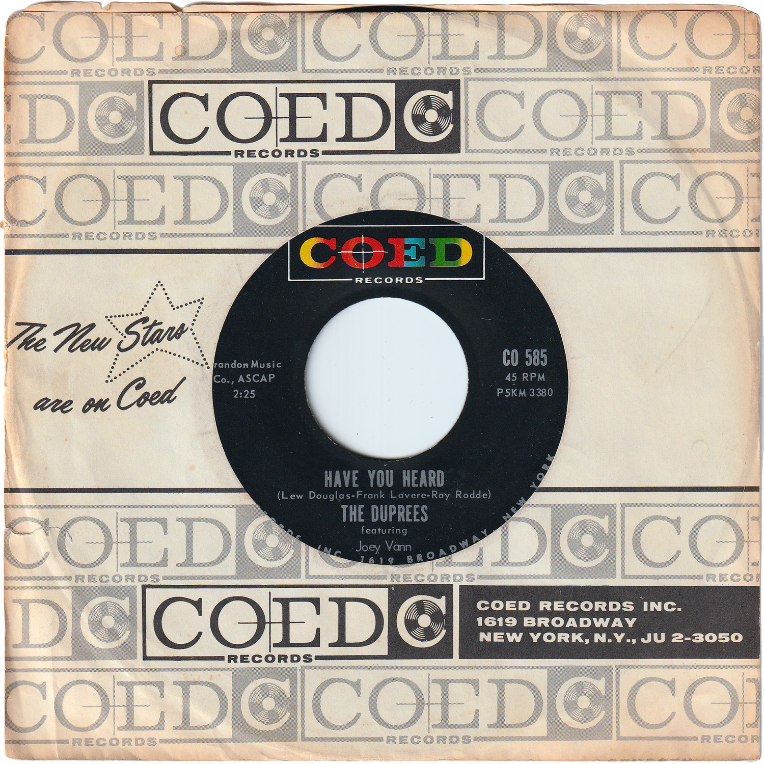 ニュージャジー州ジャージー・シティーの高校に通う友人同士で結成されたポップ・コーラス~ホワイト・ドゥーワップ・グループ/ザ・デュプリーズが、1963年10月にCOEDレーベルからリリースしたシングルです。