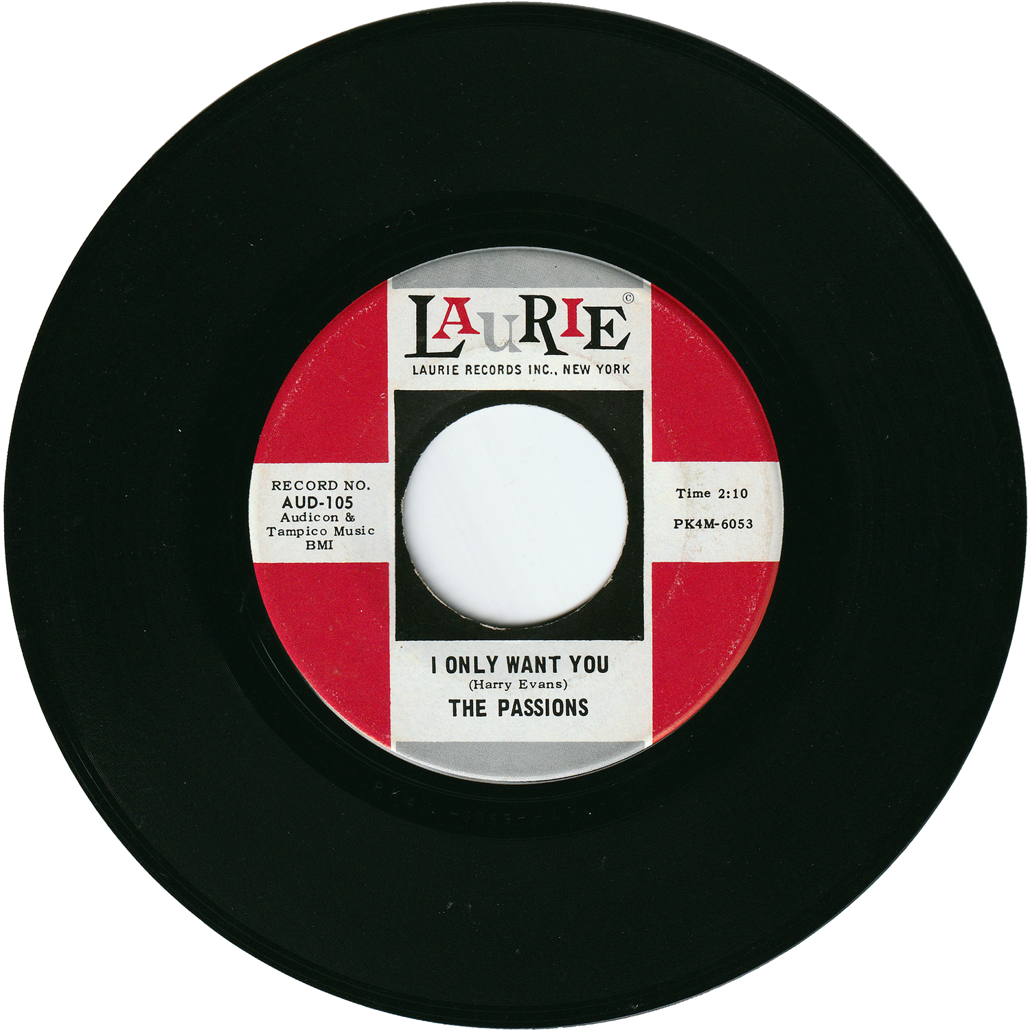ニューヨーク・ブルックリン出身のポップス~ホワイト・ドゥーワップ・グループ/ザ・パッションズのカップリングで、1960年にAUDICONレーベルからリリースした作品の、1963年LAURIEレーベル・ディストリビュート盤シングルです。