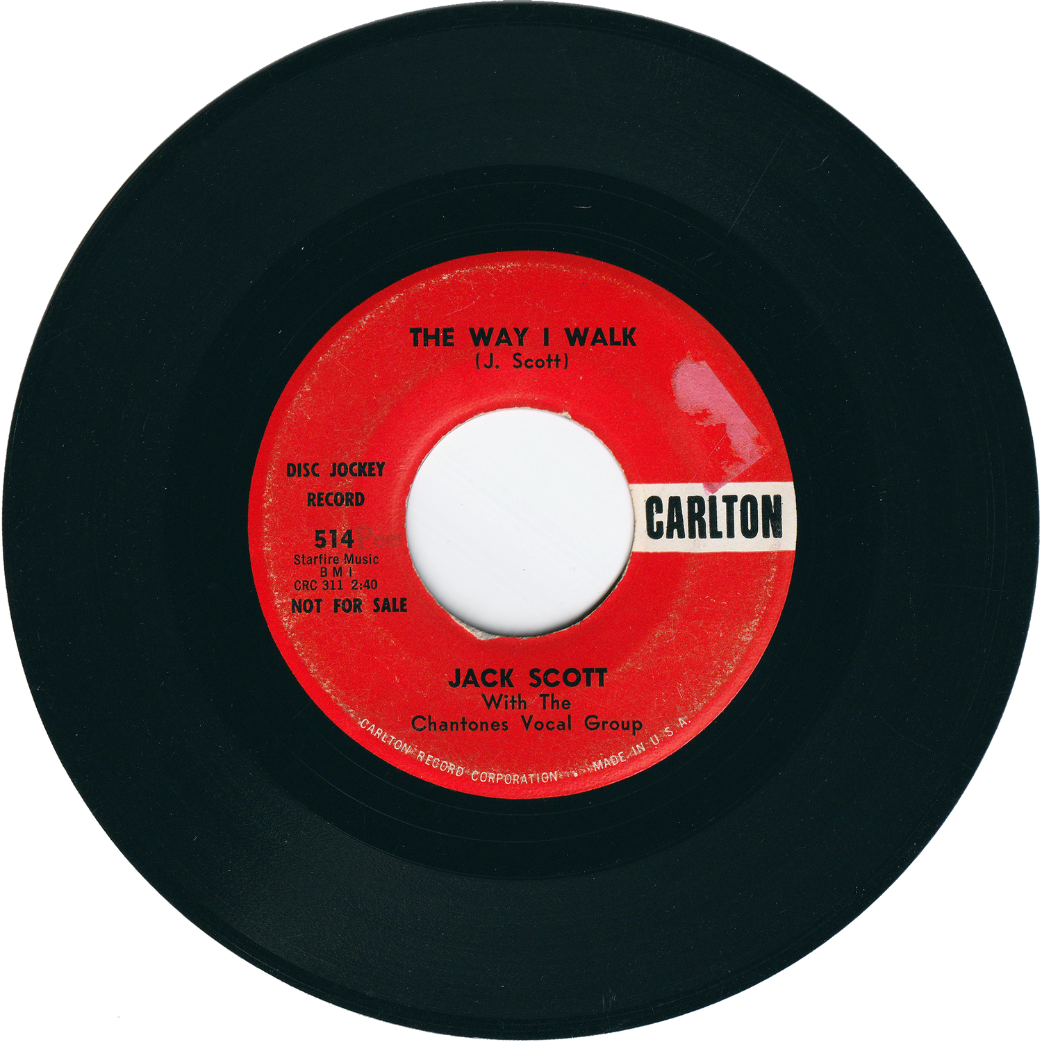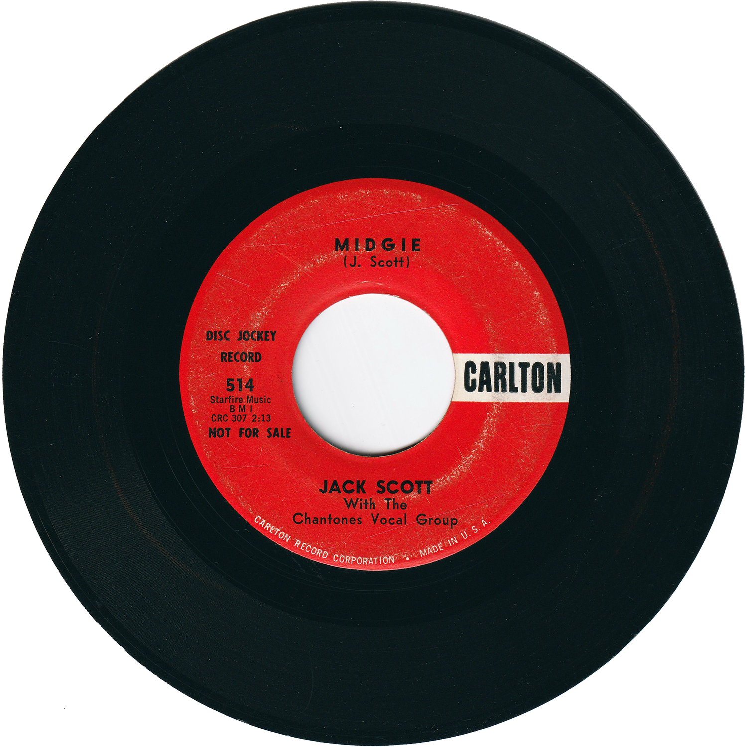 1950年代後期のロックンロール不毛時期において、本格的なロカビリー・サウンドでチャートヒットを連発した、カナダ・オンタリオ州ウィンザー出身のロックンロール・シンガー・ソングライター、ギタリスト/ジャック・スコットが、1959年にCARLTONレーベルからリリースしたシングルです(プロモ盤)。