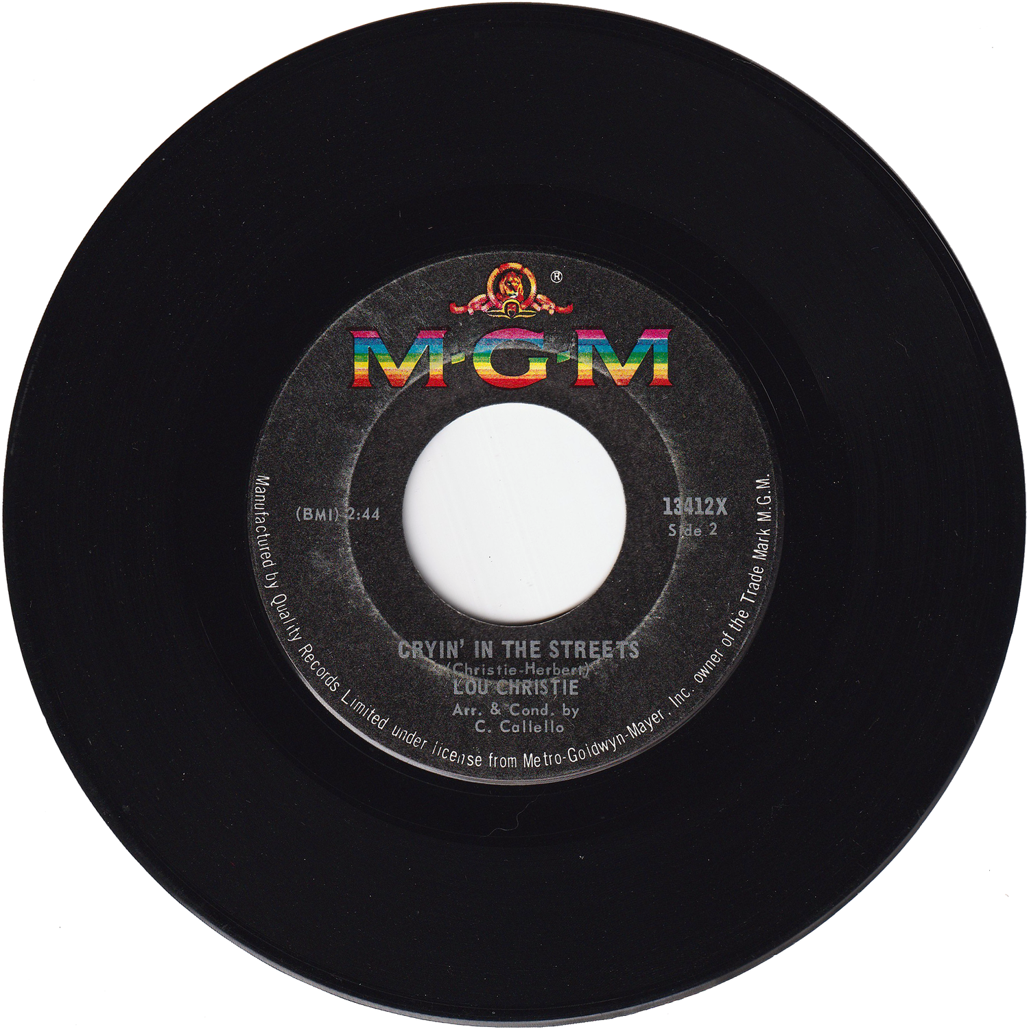 1965年の大ヒット「ライトニング・ストライク」が知られるペンシルヴァニア州グレンウィラード出身のポップ・シンガー/ルー・クリスティーが、1965年にカナダのMGMレーベルからリリースしたシングルです。