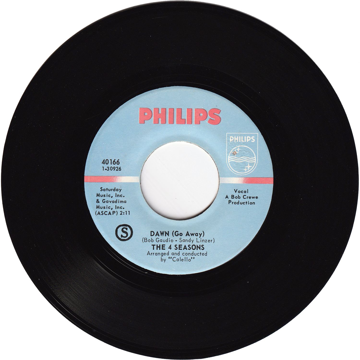 4シーズンズはこの頃にVEE-JAYレコードとロイヤルティ紛争を行っており、訴訟と進行しながらも、グループは「ドウン」や他の数曲を録音し、VEE-JAYレコードのマスターテープを差し控え、契約違反を主張しました。この紛争は、4シーズンズが正式にVEE-JAYレコードを去った翌年の1965年まで解決されませんでした。移籍先として候補だったATLANTICレコードからは拒否され、その後すぐに、グループはMERCURYレコードの子会社であるPHILIPSレコードと契約しました。そしてレーベル移籍後の初シングルとしてだされたのが「ドーン」で、大ヒットとなりました。