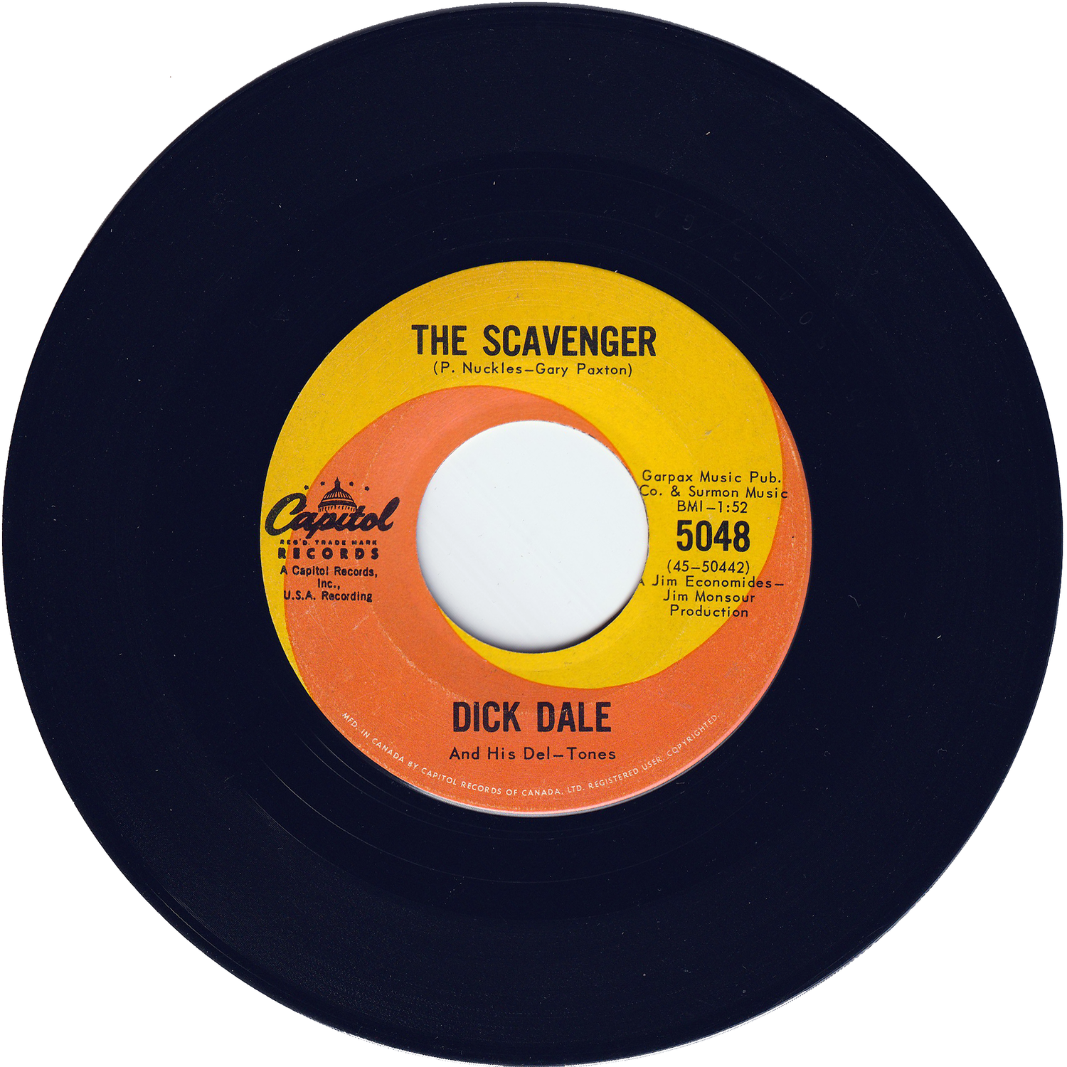 “サーフ・ギターの王様”として知られるロック・ギタリスト/ディック・デイルが、1963年にカナダのCAPITOLレーベルからリリースしたシングルです。