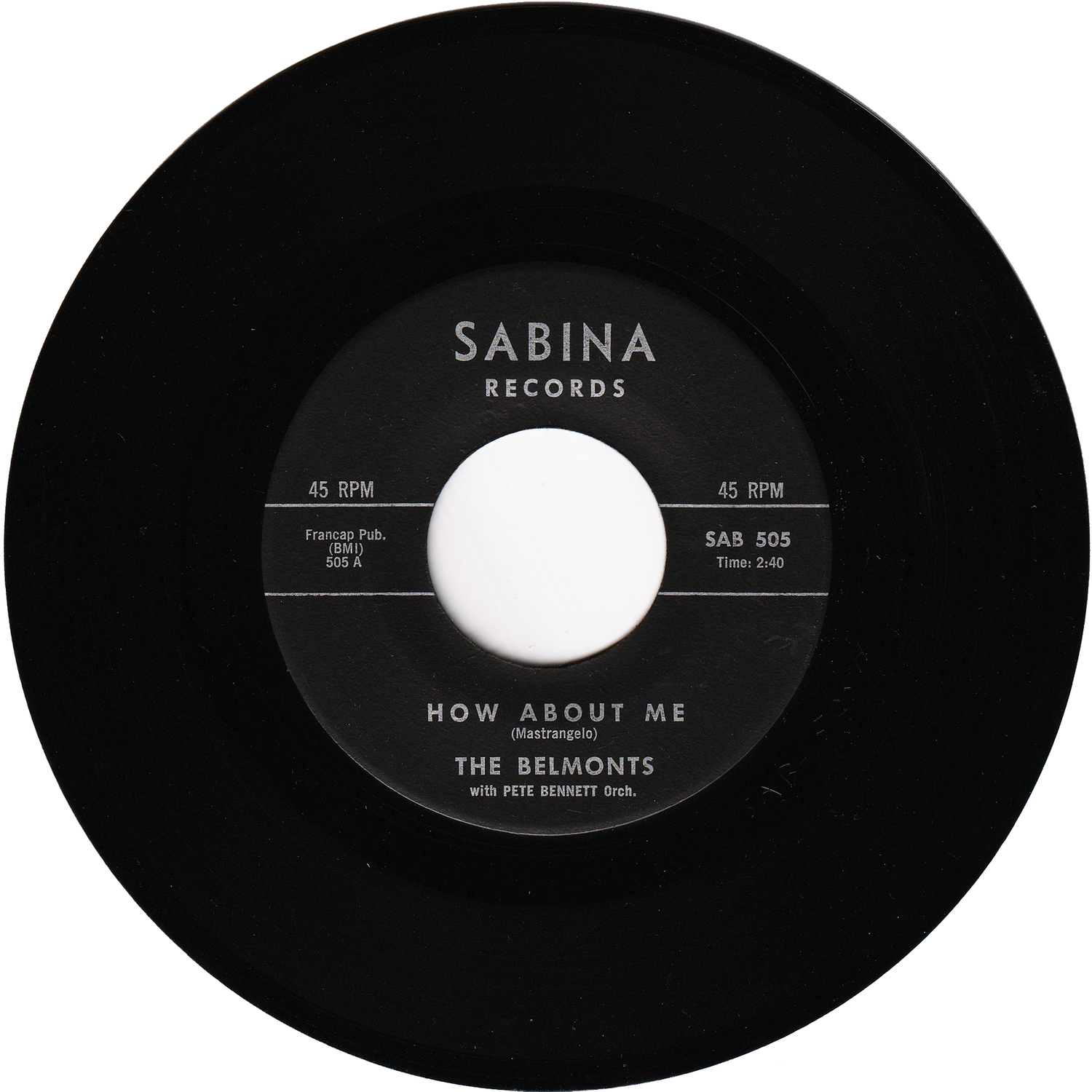 ディオン・ディムッチが在籍し、50年代後半のホワイト・ドゥーワップのブームを引率した事でも知られる、ニューヨーク・ブロンクス出身のポップ・コーラス~ホワイト・ドゥーワップ・グループ/ザ・ベルモンツが、ディオン脱退後の1962年にSABINAレーベルからリリースしたシングルです。