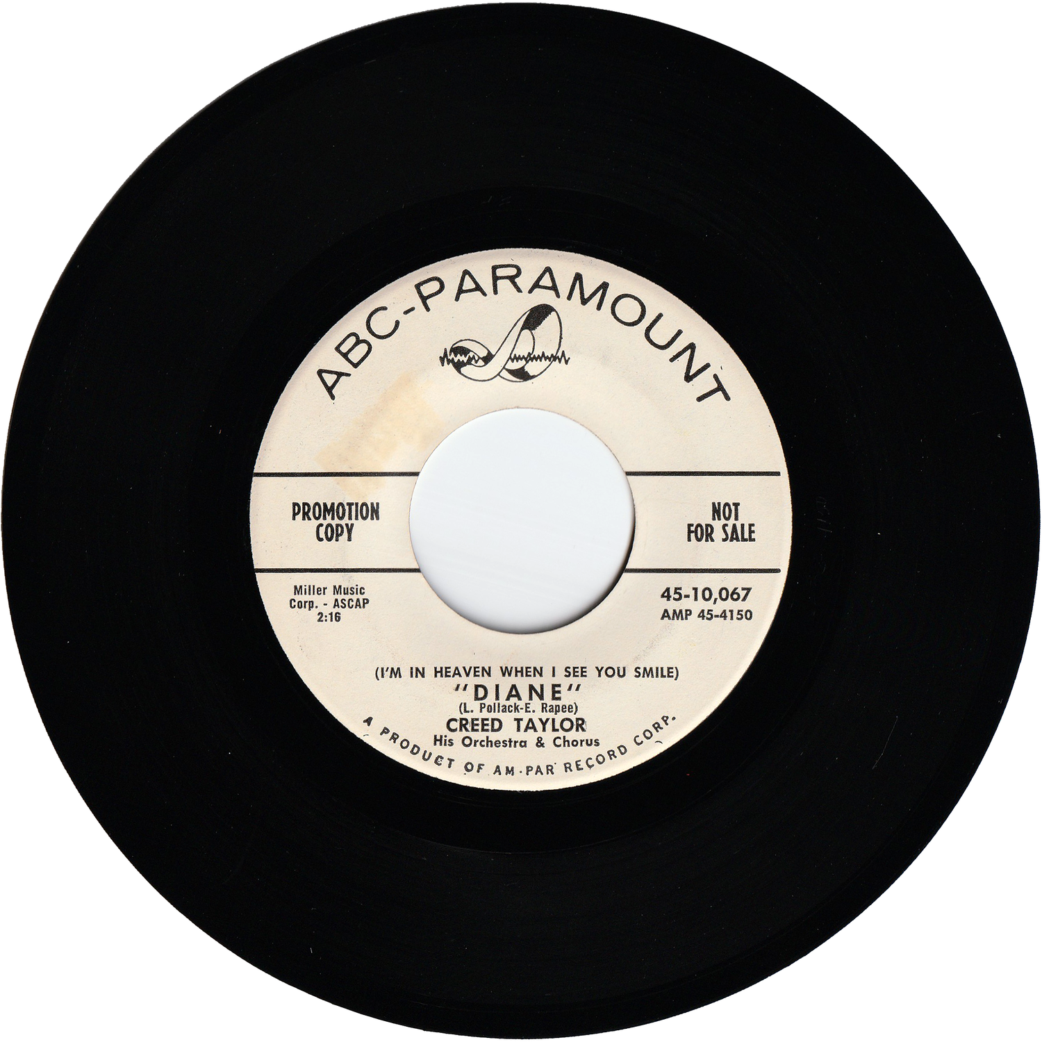 CTIレーベルの発足人でもある音楽プロデューサーとして知られるクリード・テイラーが、1959年にABC PARAMOUNTレコードからリリースした自己名義でのシングルです(ホワイト・レーベル・プロモ盤)。