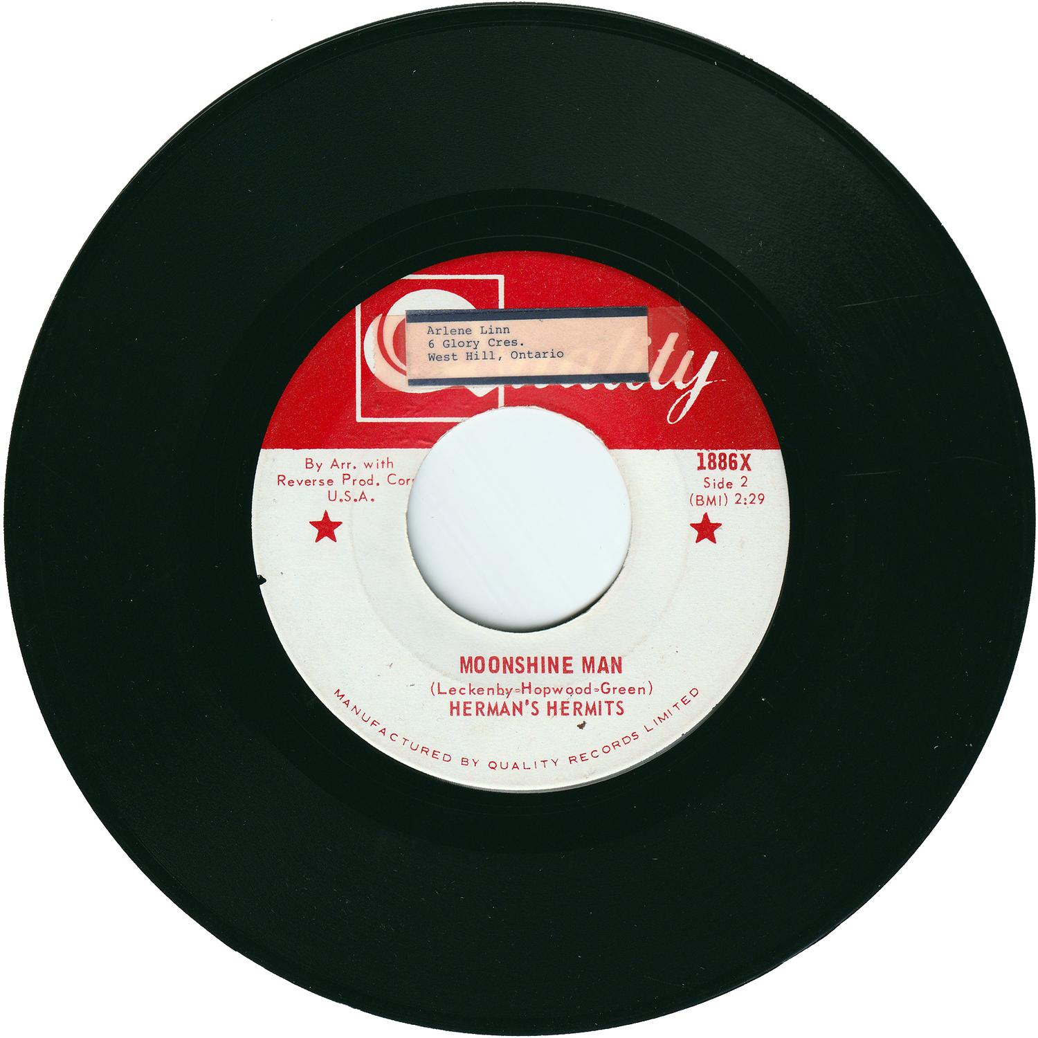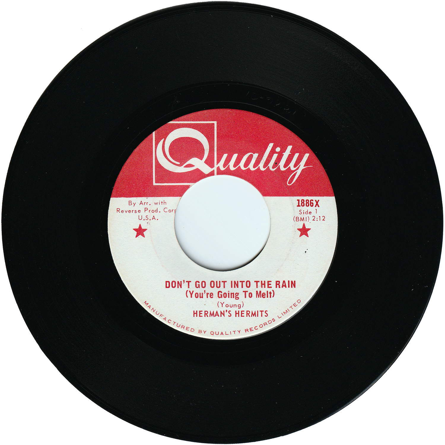 1964-1968年の間に多くの世界的ヒットを飛ばし、ブリティッシュ・インベーションを代表する大物グループとして有名になった、イギリス・マンチェスター出身のブリティッシュ・ビート・グループ/ハーマンズ・ハーミッツが、1967年6月にカナダQUALITYレーベルからリリースしたシングルです。