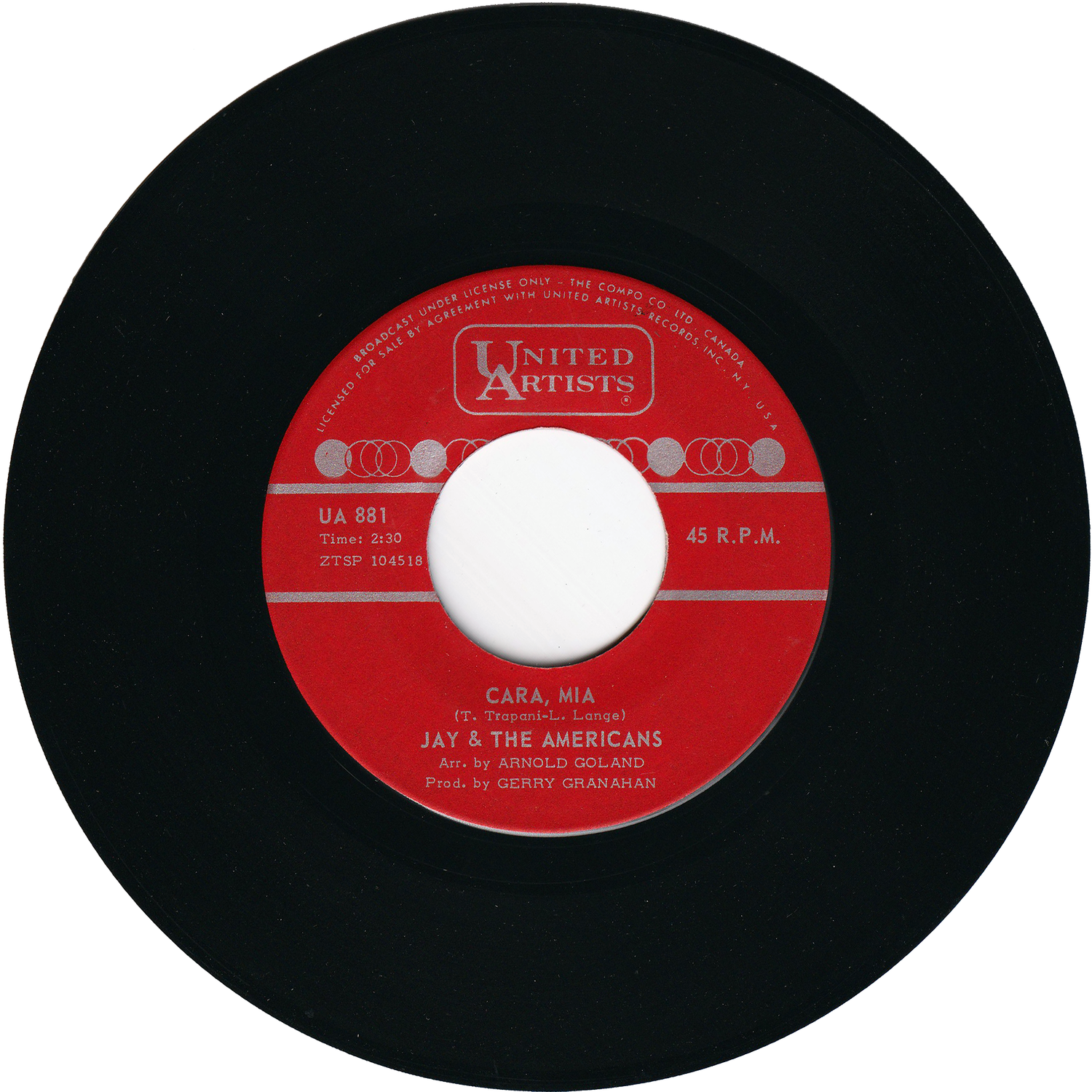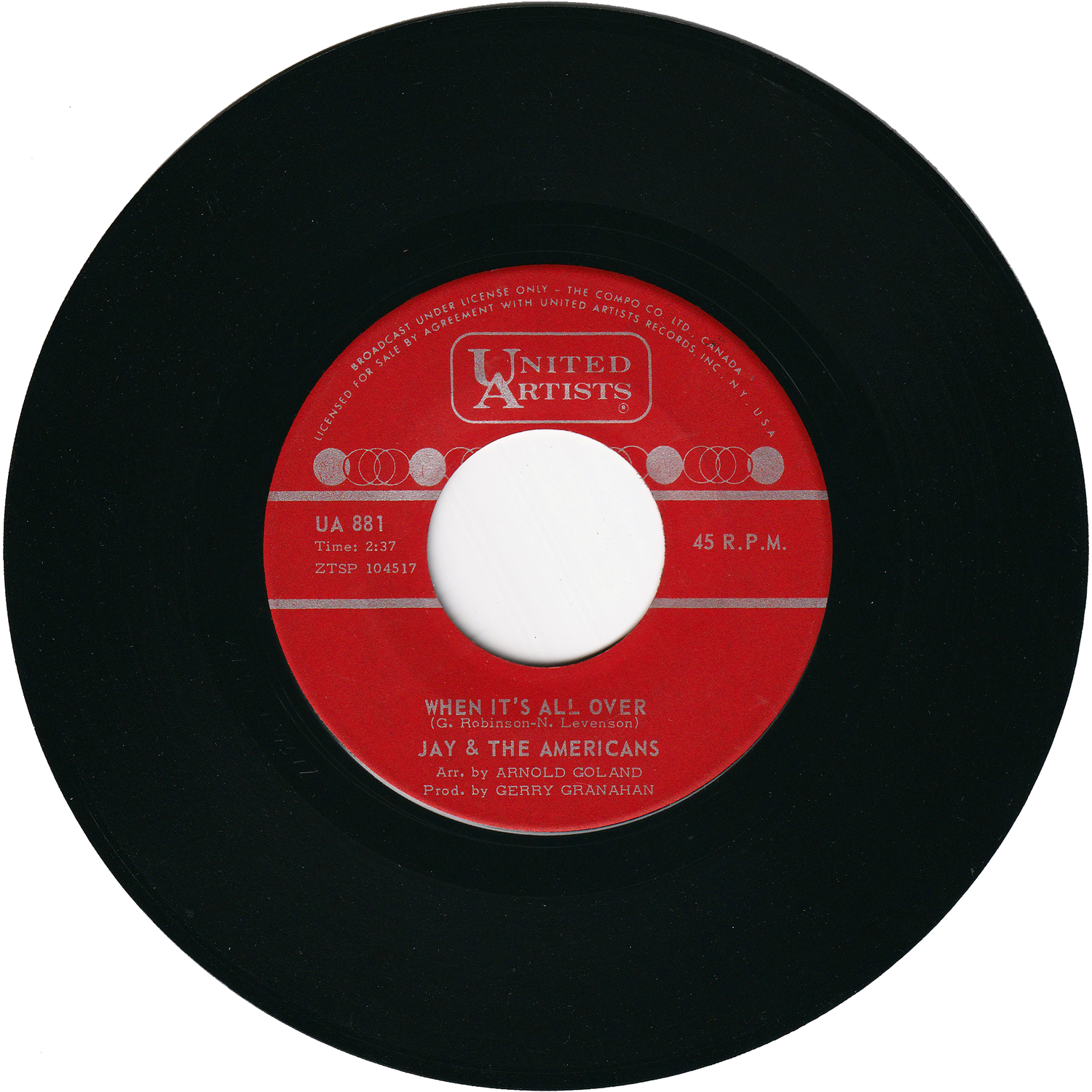 1965 Canada Original 45rpm Record [UNITED ARTISTS/UA 881]