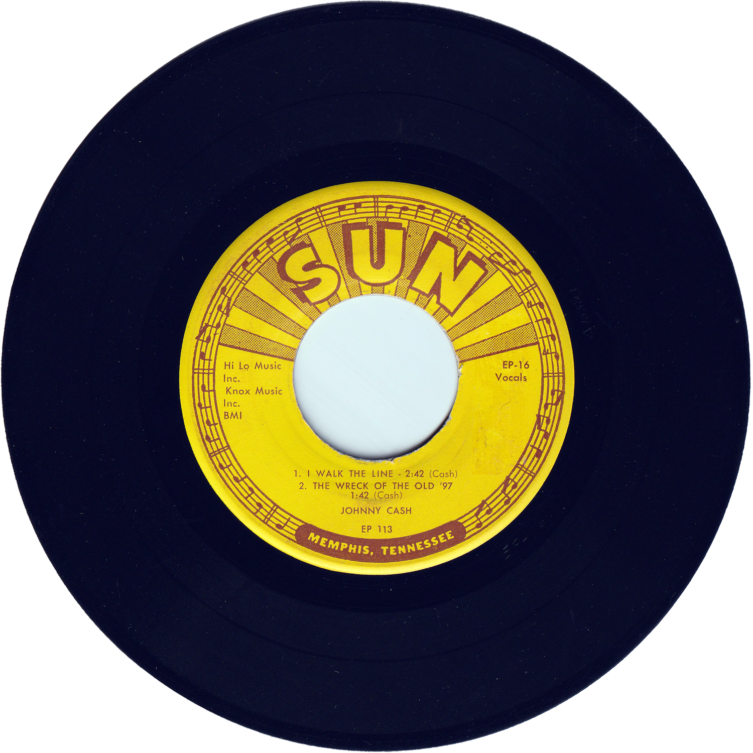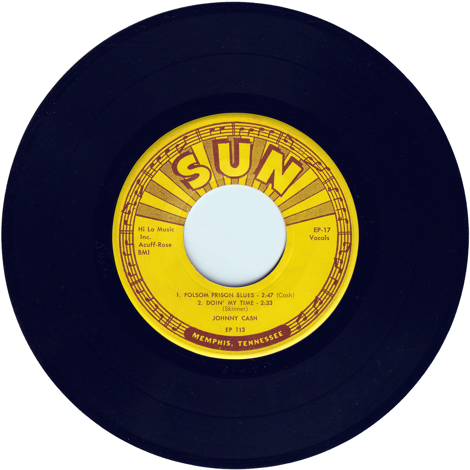 カントリー・ミュージックをベースに、フォーク、ブルース、ゴスペル等を融合させた独自のロックンロールで多大な影響を与えたロックンロール・シンガー、ソングライター、ギタリスト、ハープ奏者/ジョニー・キャッシュが、1958年にSUNレーベルからリリースした45回転7インチ・4曲入りEPシングルです。