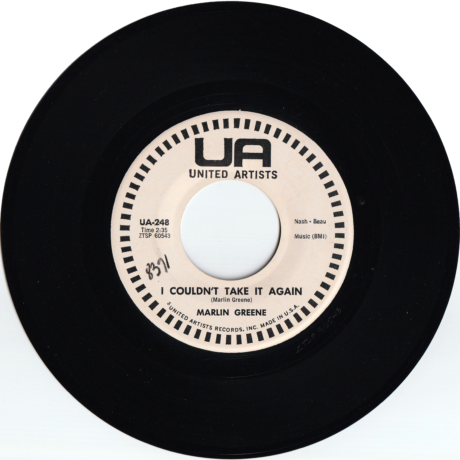 アラバマのマッスルショールズ・サウンドの重要な立役者の一人として知られる、エンジニアでギタリストでシンガー・ソングライター(エディー・ヒントンとのコンビが有名)であるマーリン・グリーンが、1960年8月にUNITED ARTISTSレコードからリリースしたシングルです(ホワイト・レーベル・プロモ盤)。