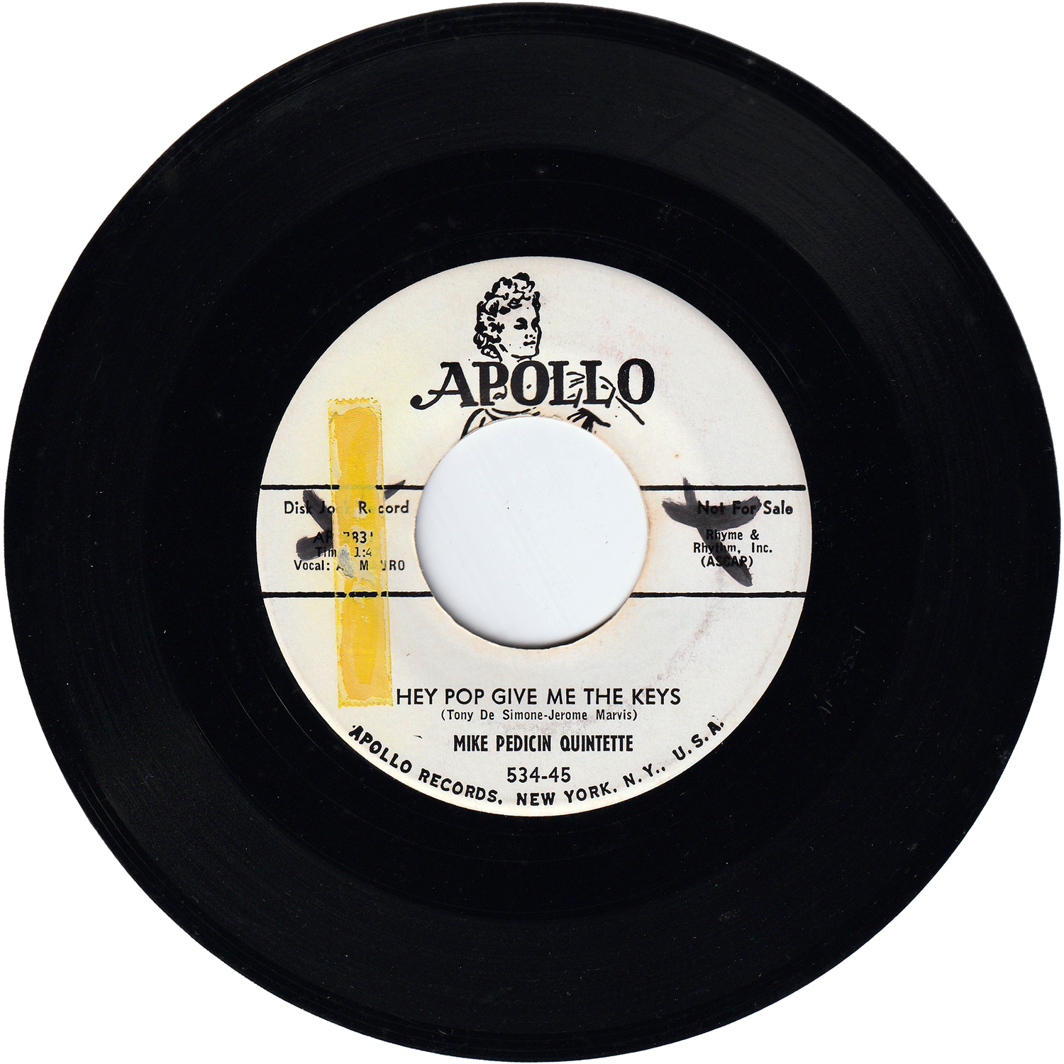 「シェイク・ア・ハンド」のヒットや、「バーン・トースト&ブラック・コーヒー」でも知られる、ウェスト・フィラデルフィア出身の白人ロックンロール・シンガー、バンド・リーダー、サックス奏者/マイク・ペディシンが、1959年4月にAPOLLOレコードからリリースしたシングルです(ホワイト・レーベル・プロモ盤)。