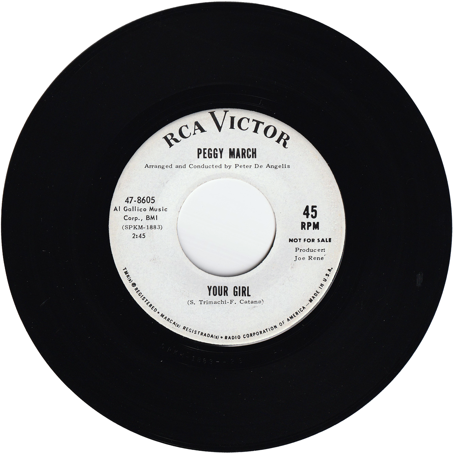 米国以外にも、オーストラリア、ニュージーランド、日本、南アフリカ、スカンジナビア等でもヒット曲をリリースし、世界的に活躍する女性ポップ・シンガーとして知られる様になった(リトル・)ペギー・マーチが、1965年にRCA VICTORレーベルからリリースしたシングルです。