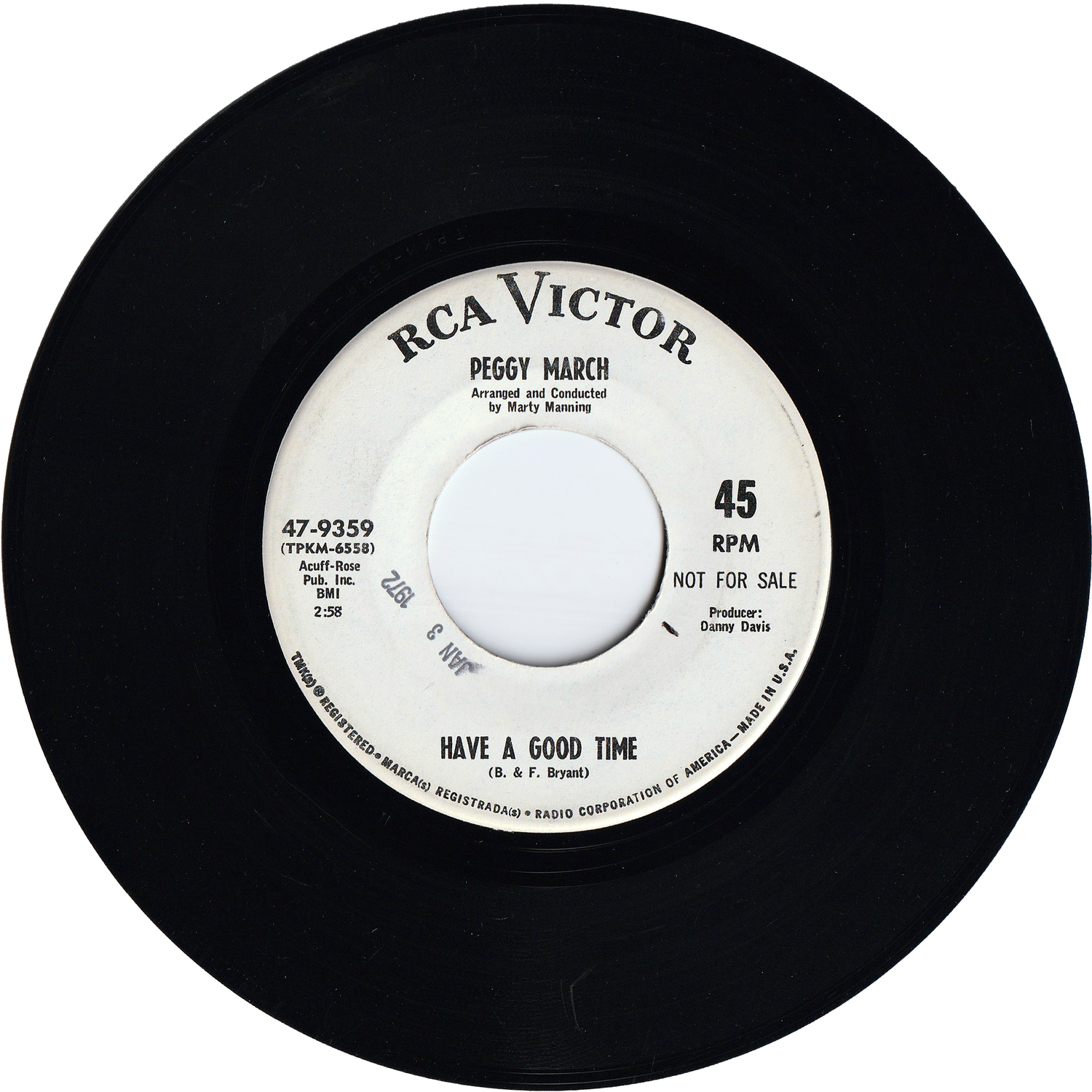 Peggy March - Let Me Down Hard / Have A Good Time [Promo, Hollywood Pressing]