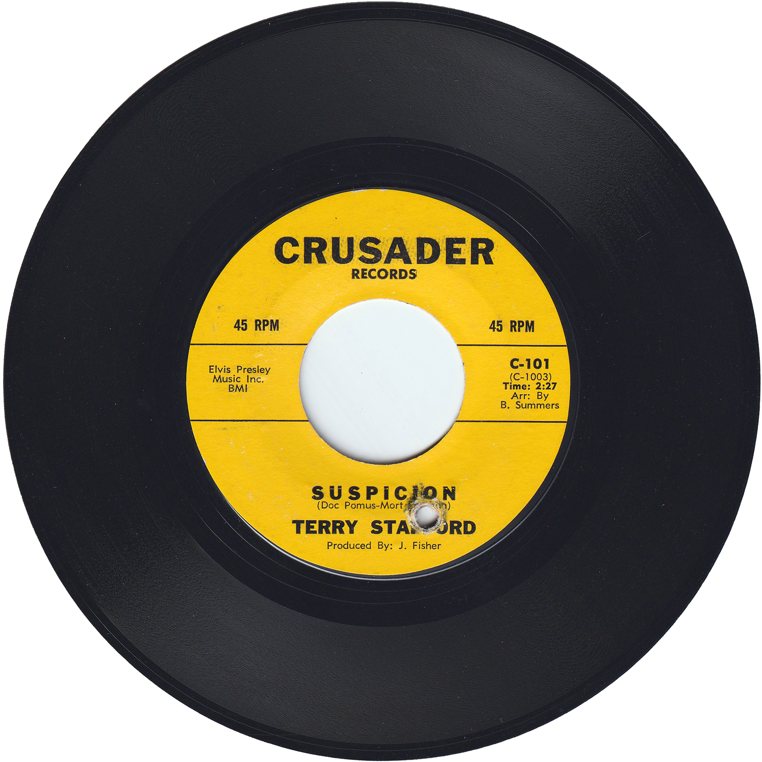 A&Mレーベルとの契約に失敗した後、スタッフォードはボブ・サマーズのロサンゼルス・スタジオで「サスピション」のデモを録音しました。1959年のラリー・ホールによるヒット曲「サンディー」のプロデューサーとして知られているサマーズは、デモのすべての楽器を演奏しました。編曲にはフランス製の電子鍵盤楽器であるオンディオリンが含まれており、サウンド全体にリズミカルさを持たせています。スタッフォードと彼のマネージャーは、ロサンゼルス・エリアのレコード会社や、ディスクジョッキーのジーン・ウィードが新しく設立したCRUSADERレーベルの事務所の隣にあったKFWB等の地元のラジオ局に売り込み、ローカルでのヒットを経て、全国ヒットとなり、そしてカナダと英国でも大ヒットとなりました。エルヴィス・プレスリー以上にエルヴィス・プレスリーっぽく仕上がった60's ポップス・クラシックスです。