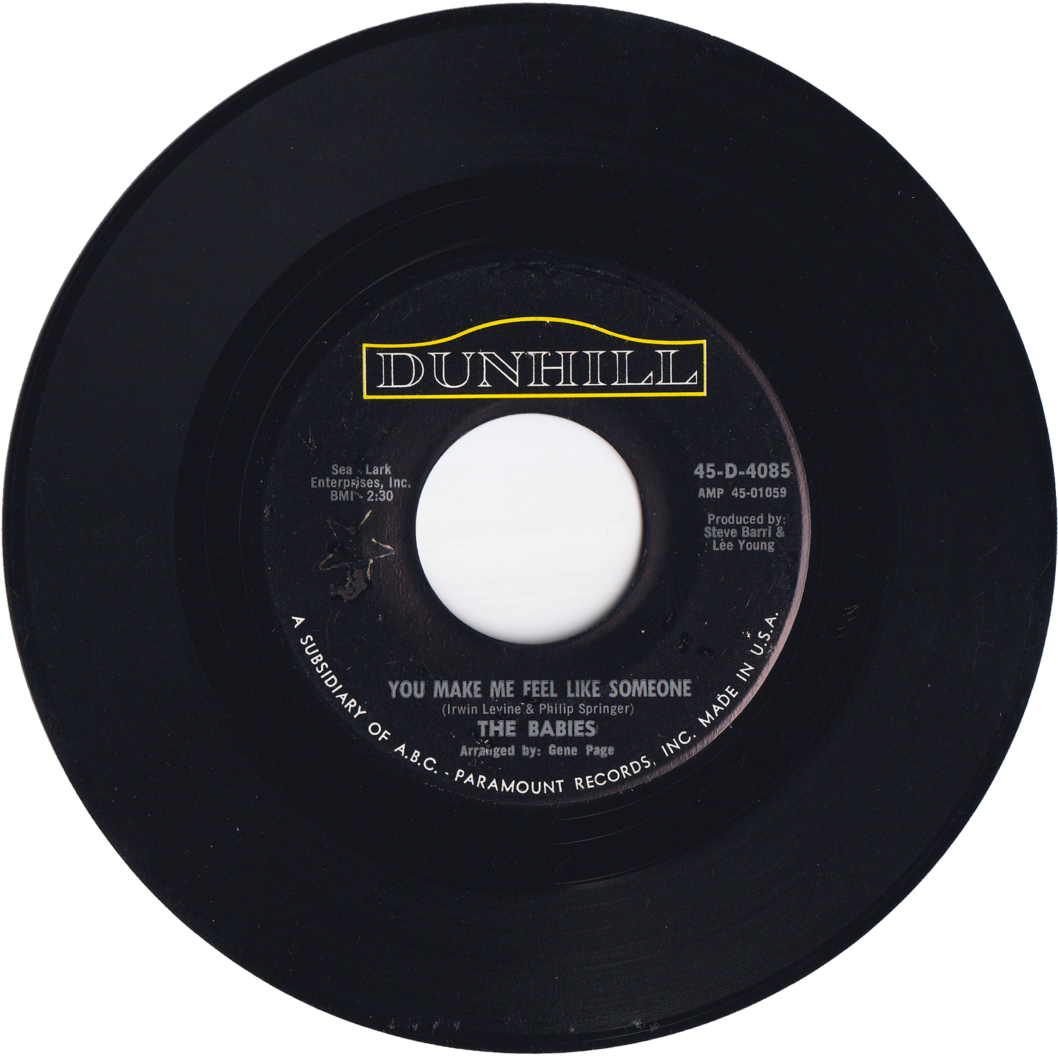 ロサンゼルスがベースと推測されるマイナーなガールズ・グループ/ザ・ベイビーズが、1967年5月にDUNHILLレーベルからリリースしたシングルです。