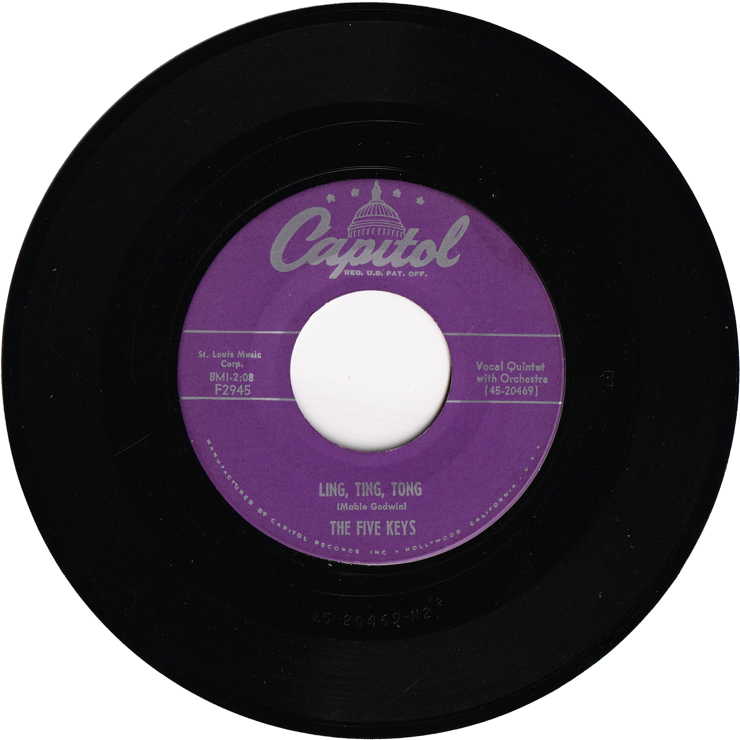 ノヴェルティー・タイプのロックンロール・ナンバー「リン・ティン・トン」や、上品さのあるバラード「クローズ・ユア・アイアズ」、「アウト・オブ・サイト、アウト・オブ・マインド」、「ウィズダム・オブ・ア・フール」等のヒットで知られる、ヴァージニア州ニューポート・ニューズ出身のR&B・グループ/ザ・ファイヴ・キーズが、1954年にCAPITOLレーベルからリリースしたシングルです。
