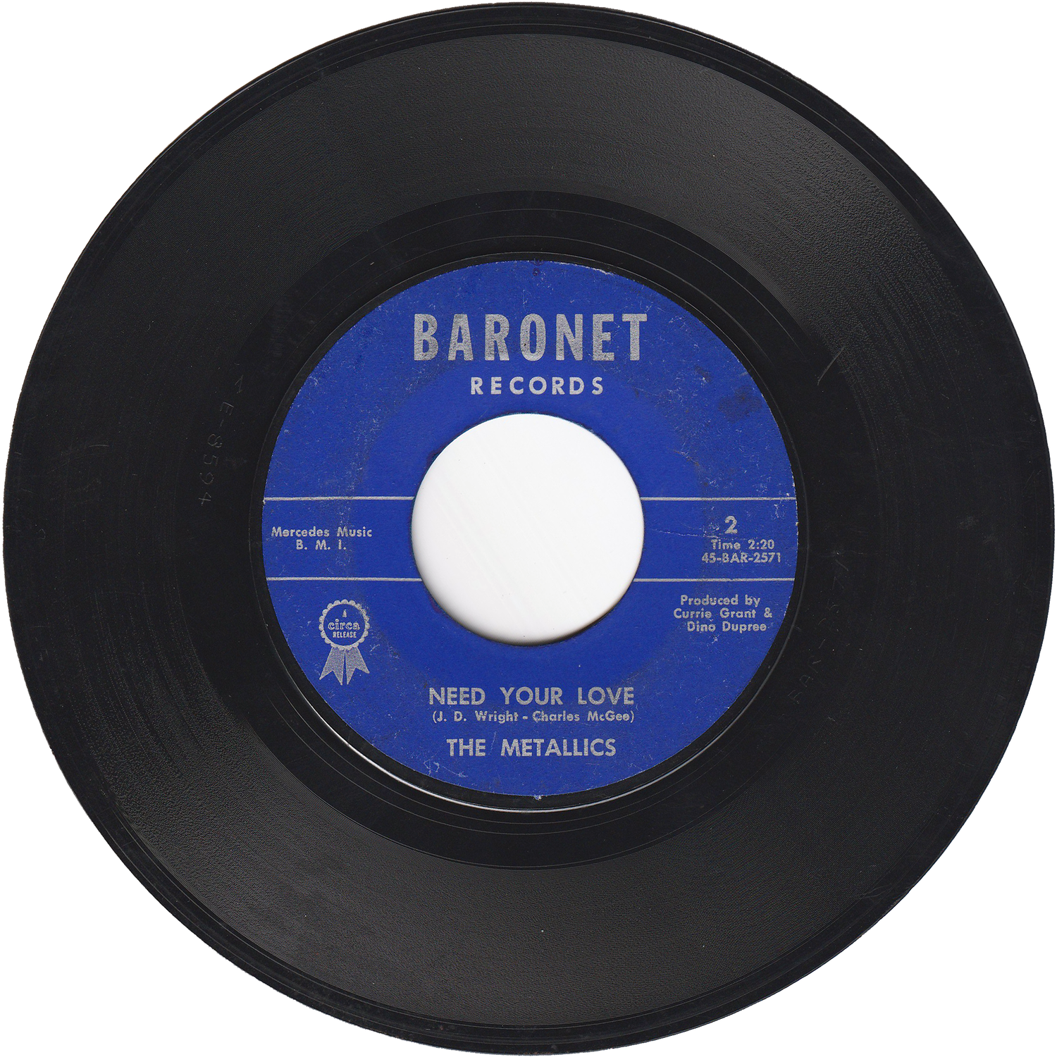 ロサンジェルスで結成されたマイナーなR&B・グループ/ザ・メタリックスが、1962年にBARONETというレーベルからリリースしたシングルです。