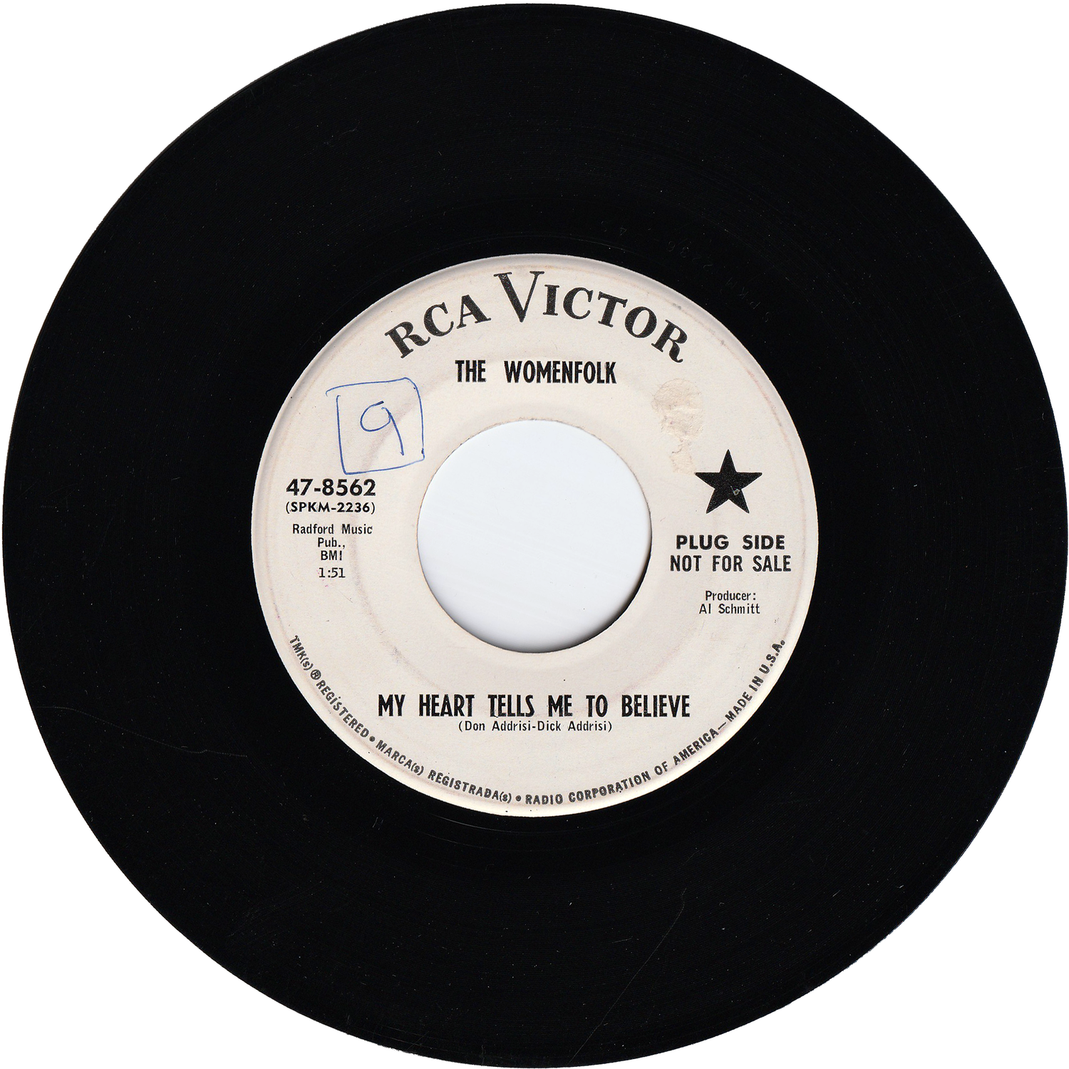 1963年から1966年まで活動した女性フォーク・グループ/ザ・ウーメンフォークが、1965年にRCA VICTORレコードからリリースしたシングルです(ホワイト・レーベル・プロモ盤)。