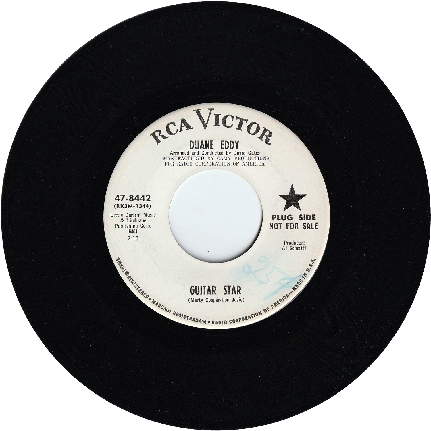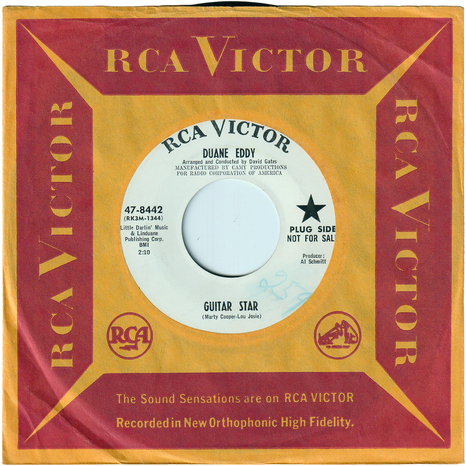 50年代後半~60年代前半にかけて、半音落としたチューニングのトワング・ギターで一世を風靡したロックンロール・ギタリスト、デュアン・エディーが、1964年にRCA VICTORレコードからリリースしたシングルです(ホワイト・レーベル・プロモ盤)。