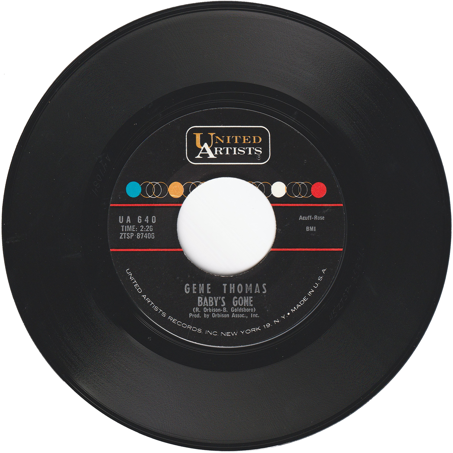60年代後半には女性歌手のデビー・ネヴィルとのコンビでも人気を博した男性ポップ・シンガー、ソングライター、ギタリスト/ジーン・トーマスが、1963年にUNITED ARTISTSレーベルからリリースしたシングルです。