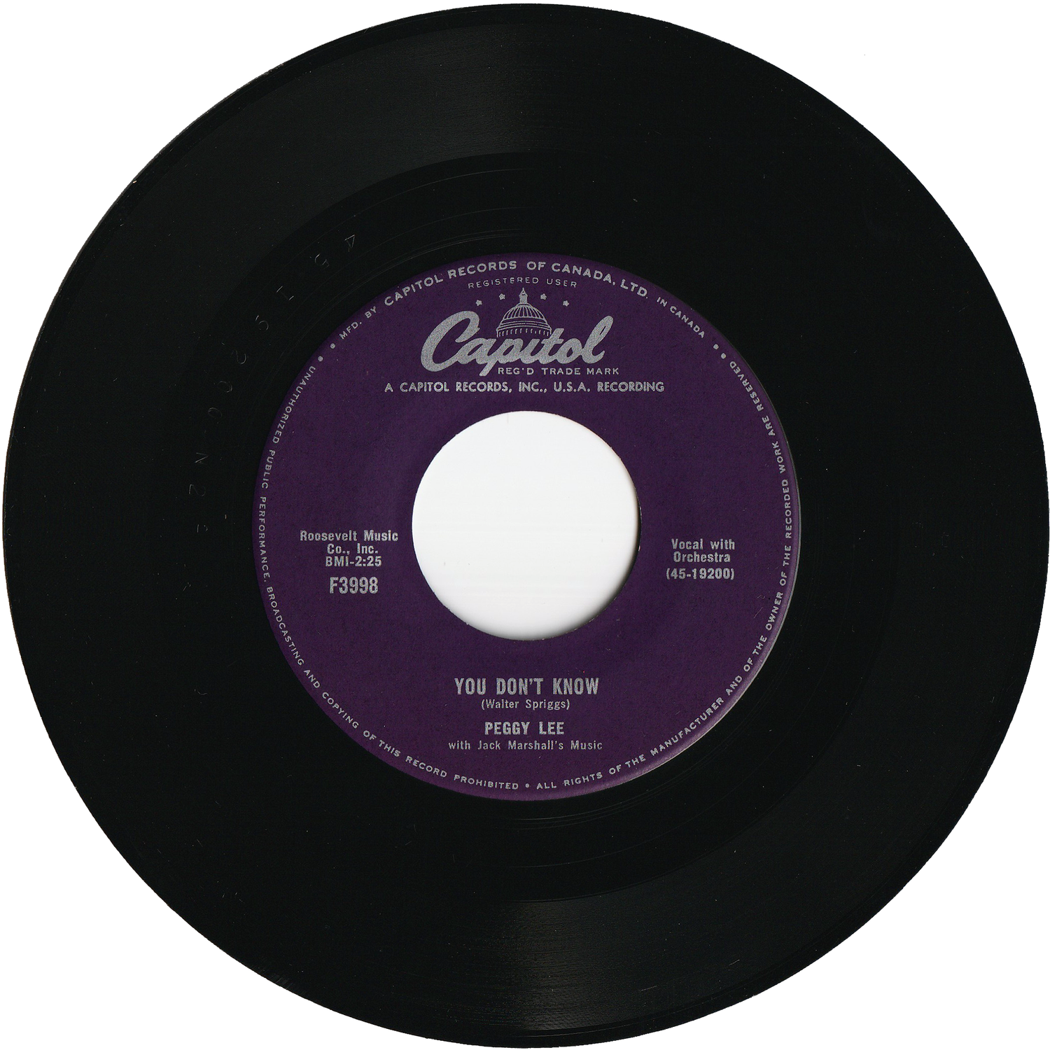 長い芸歴の中で多くのヒットを放ちグラミー賞に12回もノミネートされた事でも知られる、20世紀を代表する女性ポップ・シンガー、女優、作曲家/ペギー・リーが、1958年6月にカナダCAPITOLレーベルからリリースしたシングルです。